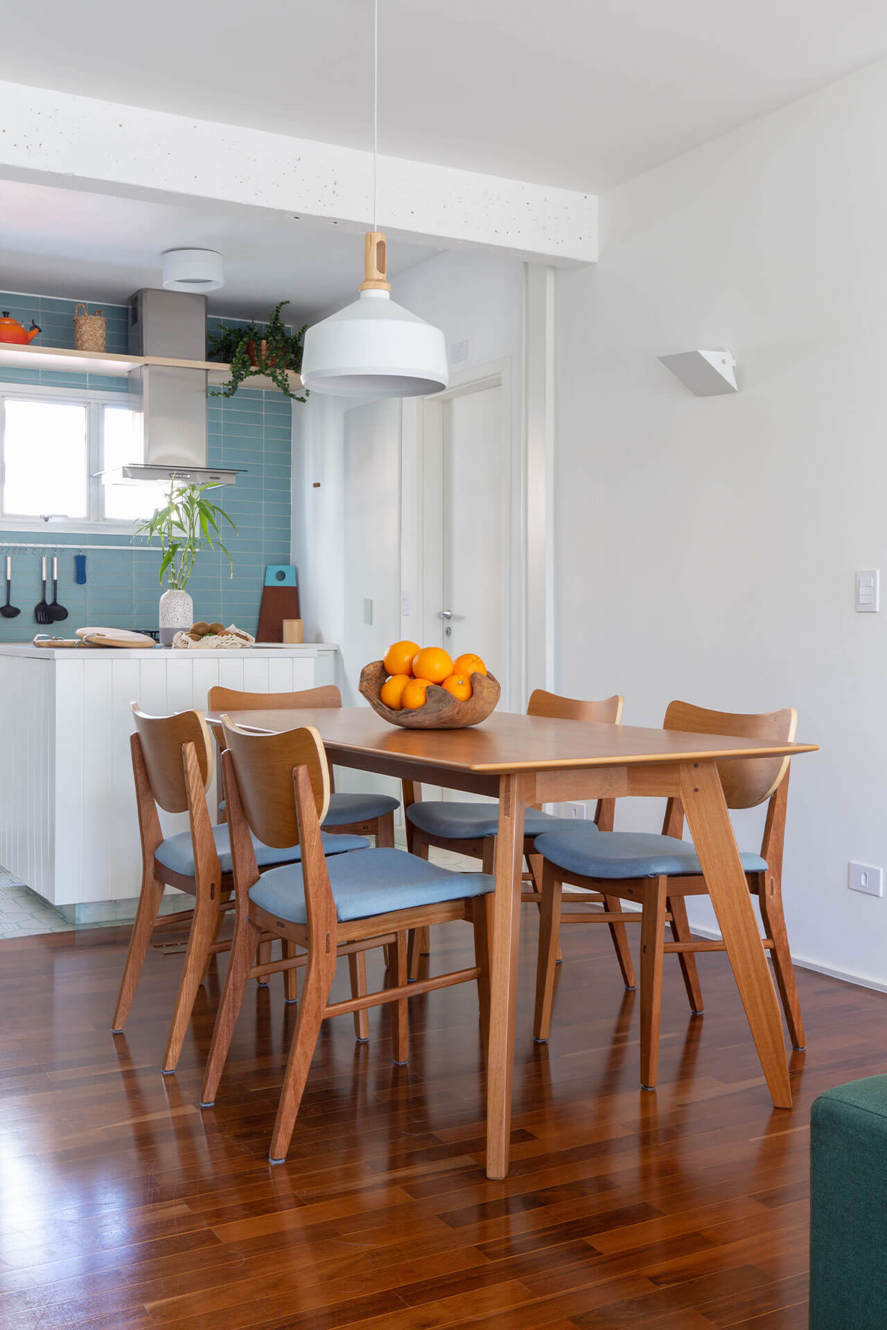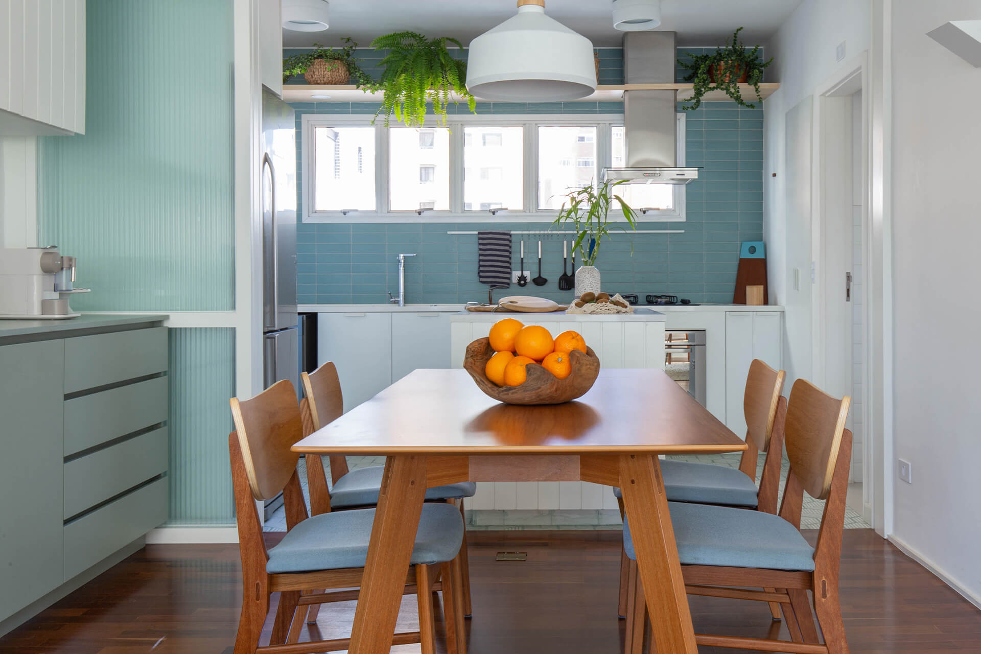 Este apartamento é a primeira morada da Mariana e do Guilherme depois do casamento, um lar jovem, colorido e acolhedor. Com a obra comandada pelo Estúdio Minke, o imóvel que já era promissor ficou ainda melhor: a cozinha foi integrada e um quarto saiu de cena para aumentar a amplitude.