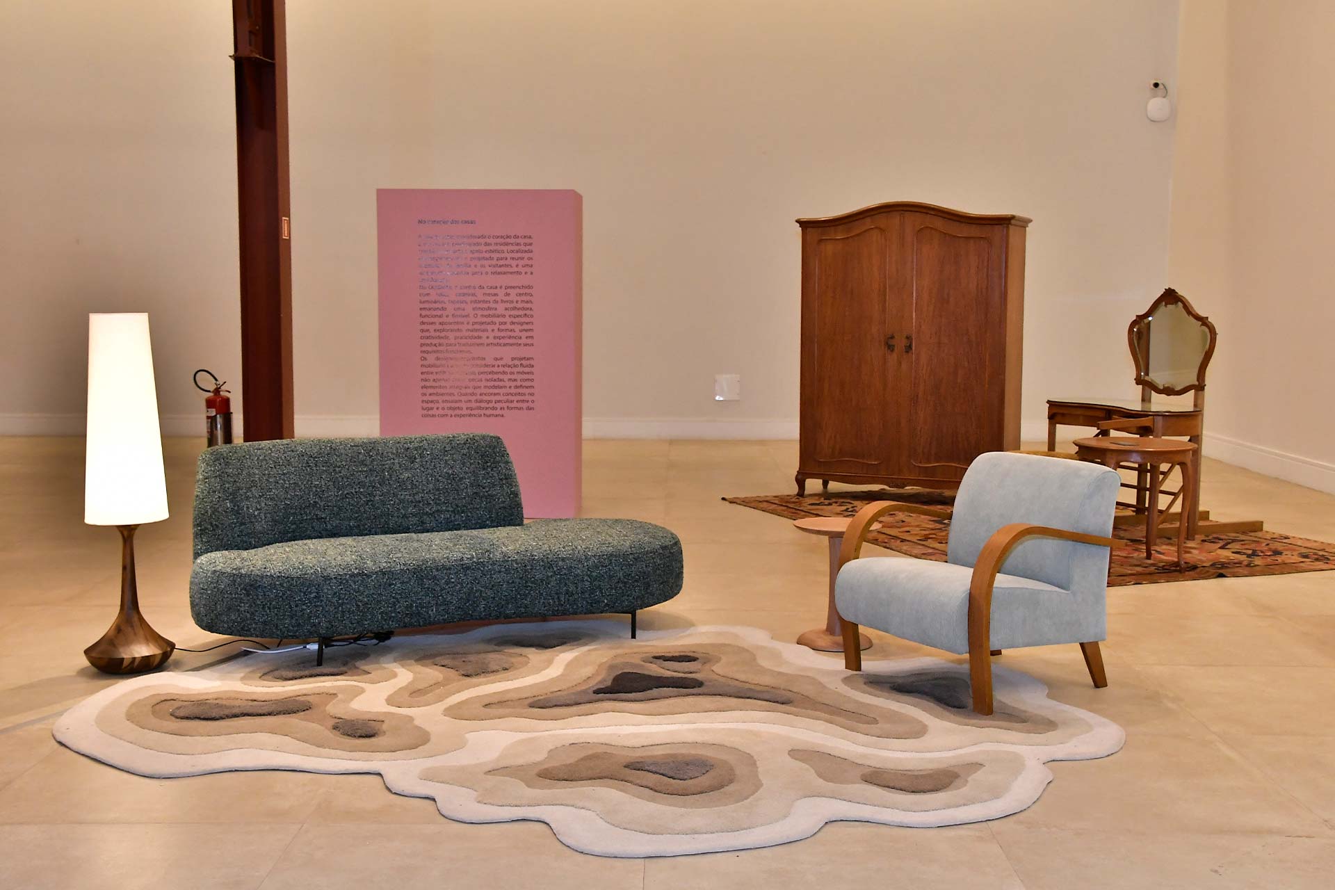 A curadoria de Fernanda Carvalho reúne peças históricas do acervo do Liceu em diálogo com criações contemporâneas de designers nacionais, destacando o valor do trabalho artesanal e dos materiais nobres.