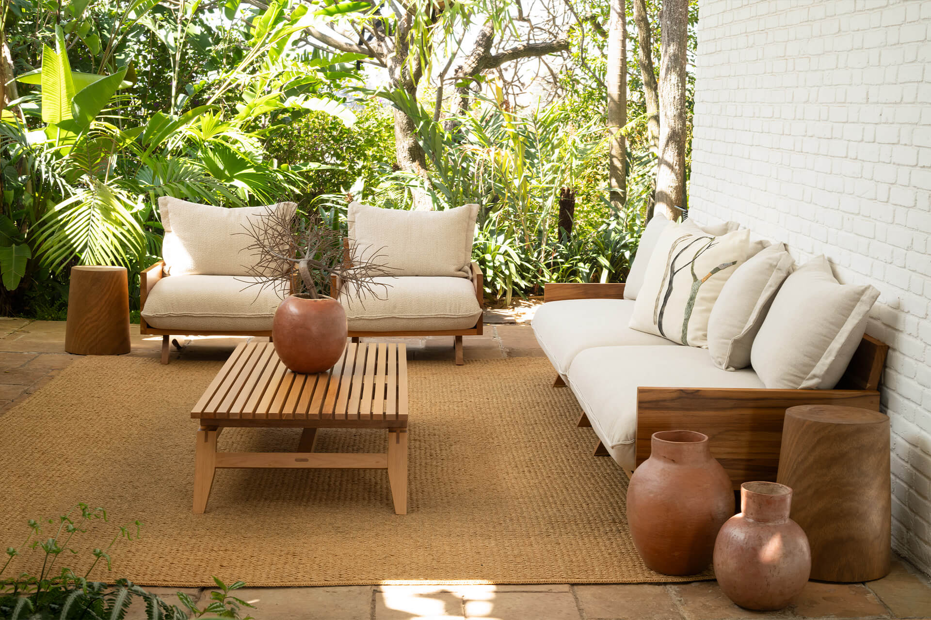 Uma área de lazer convidativa e confortável onde os móveis foram pensados para serem bastante usados sem exigir grandes preocupações.