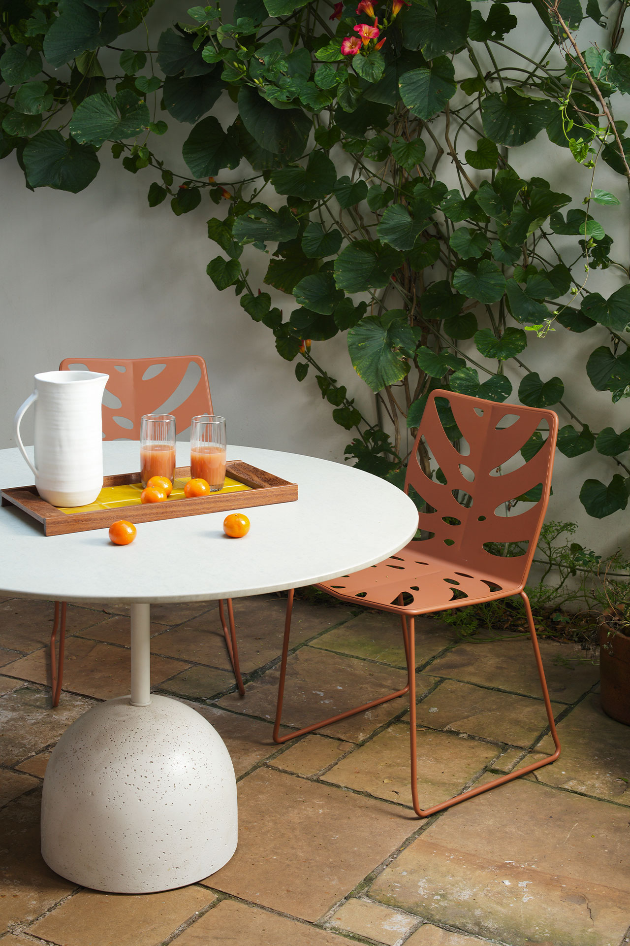A Mesa de jantar Urca, fruto da colab LISI + JAEGER, aqui está na versão com tampo cimentício. Na cor branca, seu desenho limpo contratou com as formas e cores da Cadeira Deliciosa.