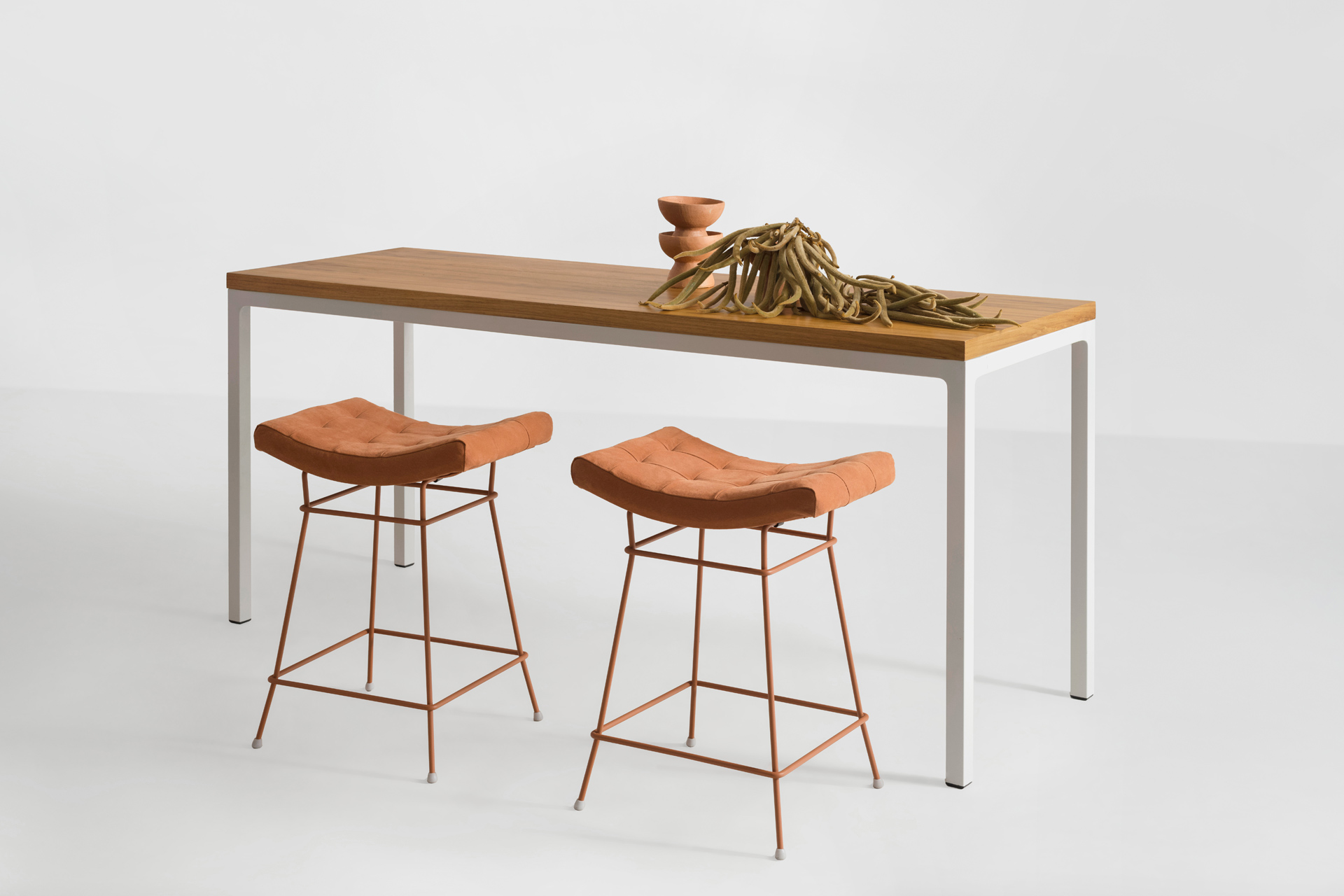 Lançado em 2001 para a Exposição “Bienal 50 anos”, o Banco Bienal é mais um dos clássicos da linha FJ. A peça tem assento de proporções generosas, estofamento macio e desenho limpo. Disponível em três versões: baixo, médio e alto – para mesas e bancadas de alturas diversas (aproximadamente 75cm; 90cm e 105cm, respectivamente).