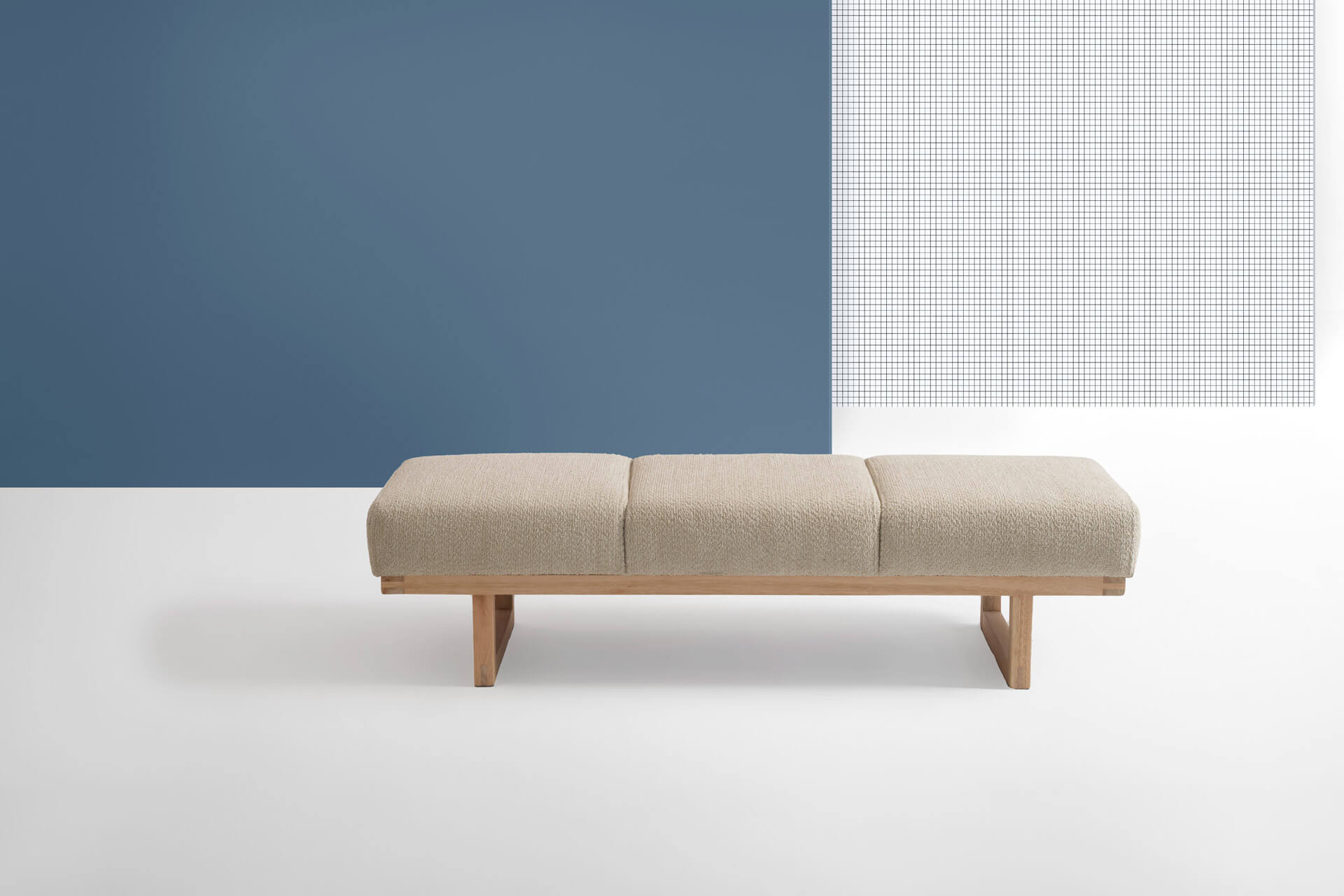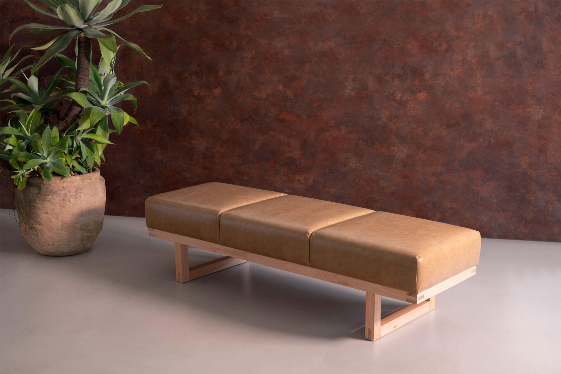 O Banco Nino recebe os marcantes pés de madeira da linha, com seus traços retos e encaixes aparentes, todo feito em madeira natural. Seu assento estofado é dividido em três gomos e pode ser feito em diversos tipos de tecidos. Uma peça delicada e versátil, que permite o uso em pés de cama, como assento em salas, hall, entre várias outras opções.