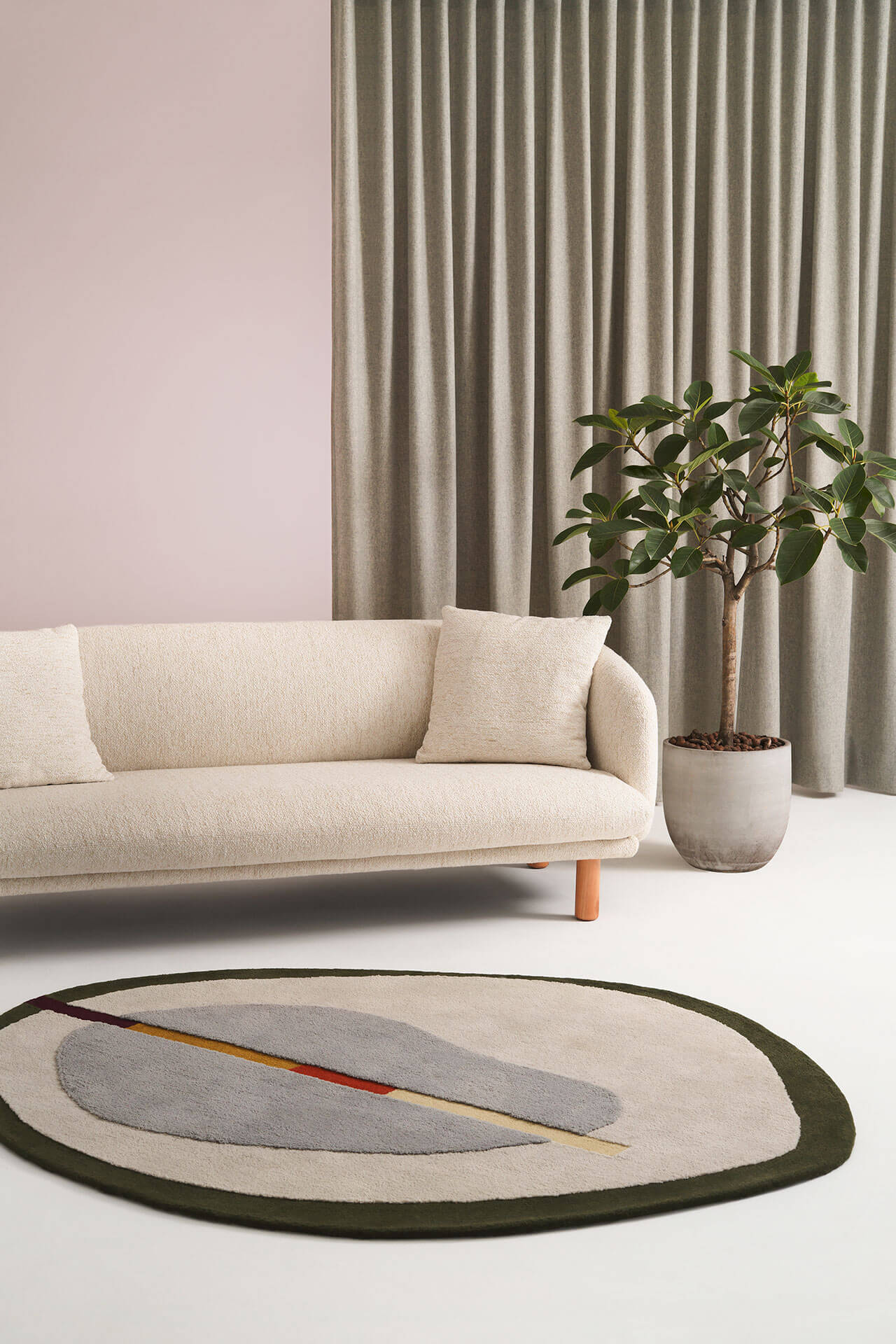 Desenhado pelo Estúdio Ouriço com exclusividade para a FJ Pronto pra levar!, o tapete Beijo destaca-se pela listra colorida horizontal e formato orgânico arredondado em diferentes alturas de fio, criando um desenho único. Fabricado em Nylon *Econyl®, o Beijo está disponível em diversas combinações de cores e várias medidas.