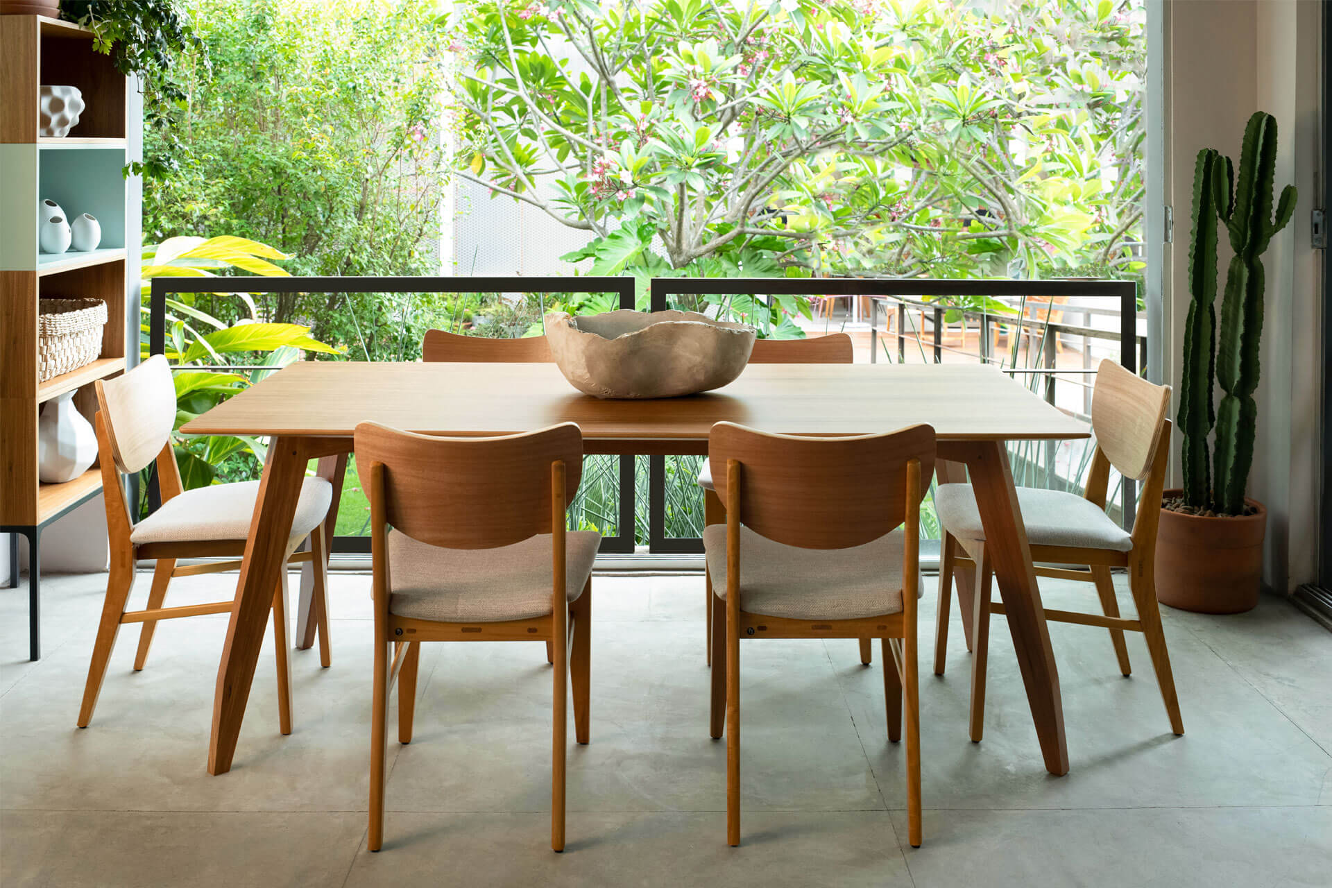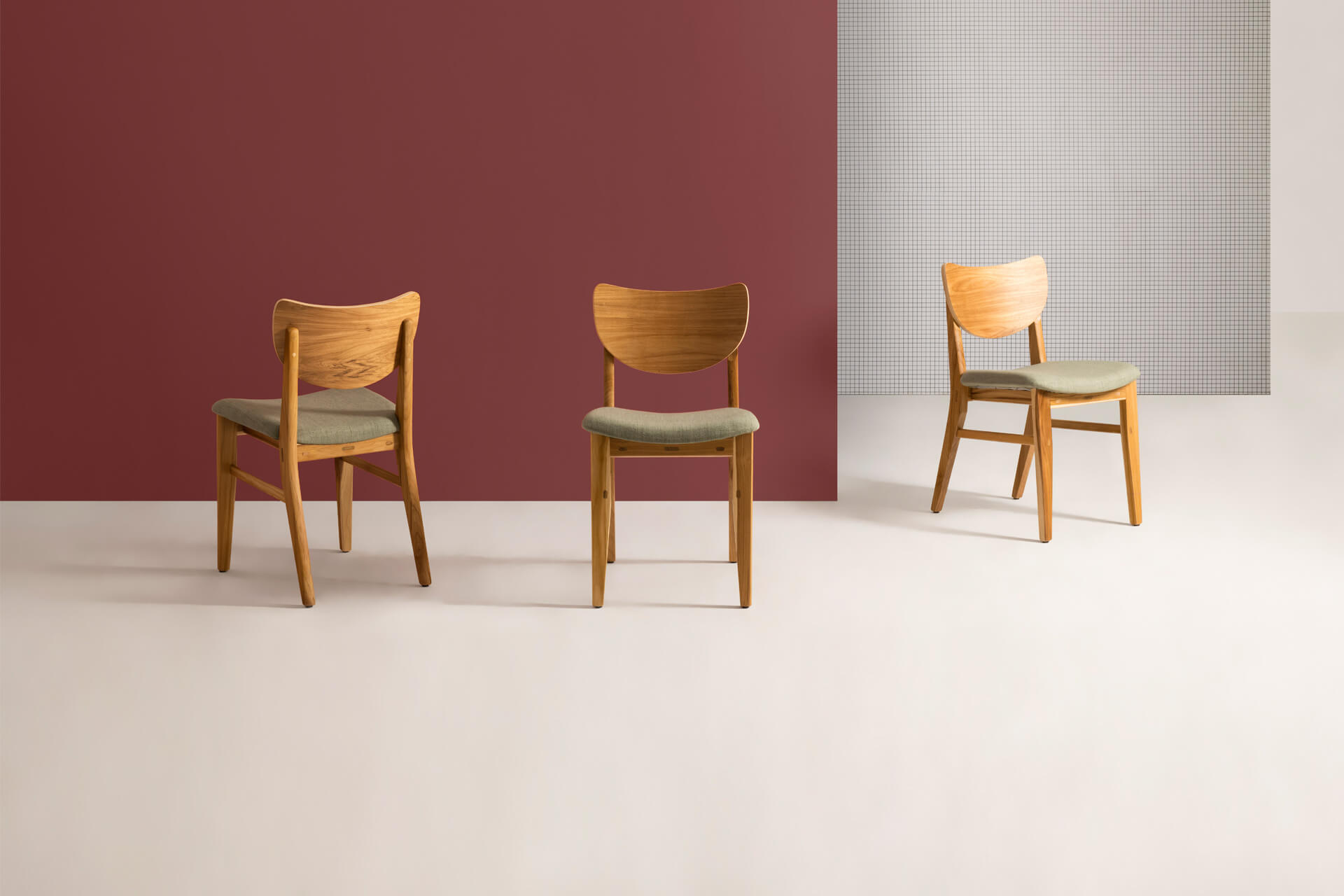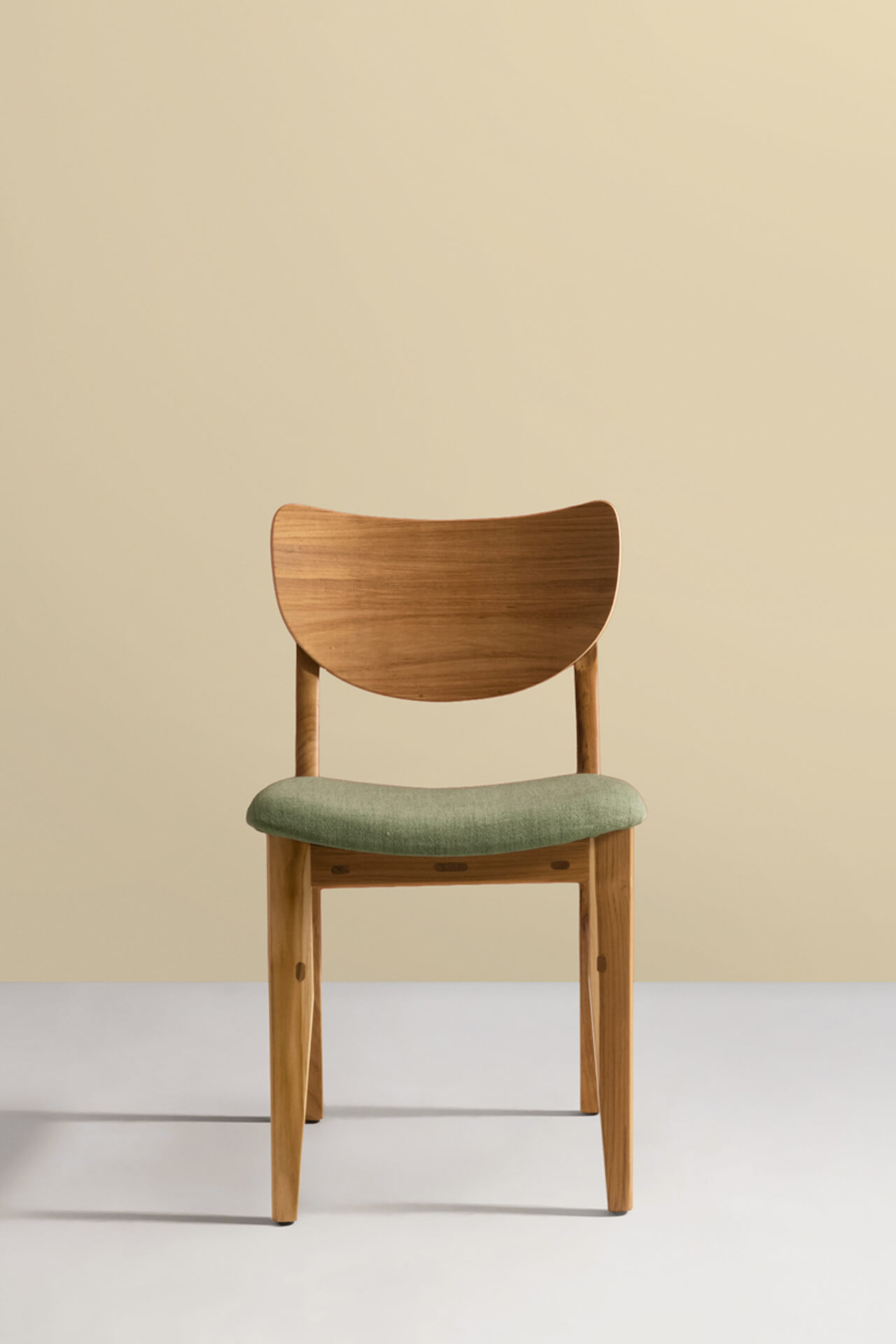 A Cadeira Maria traz a madeira maciça e os encaixes de marcenaria como protagonistas da peça. Seu desenho descontraído não deixa de lado o conforto que fica por conta do assento estofado e do encosto curvo laminado em madeira natural.