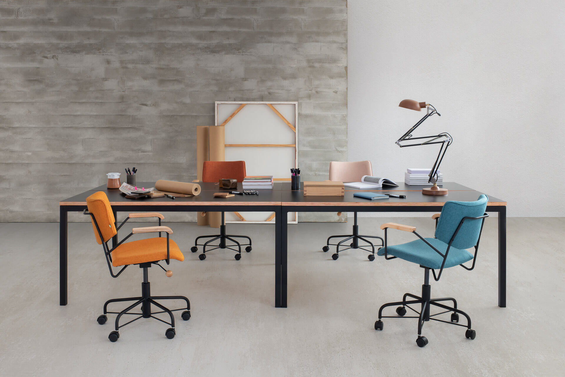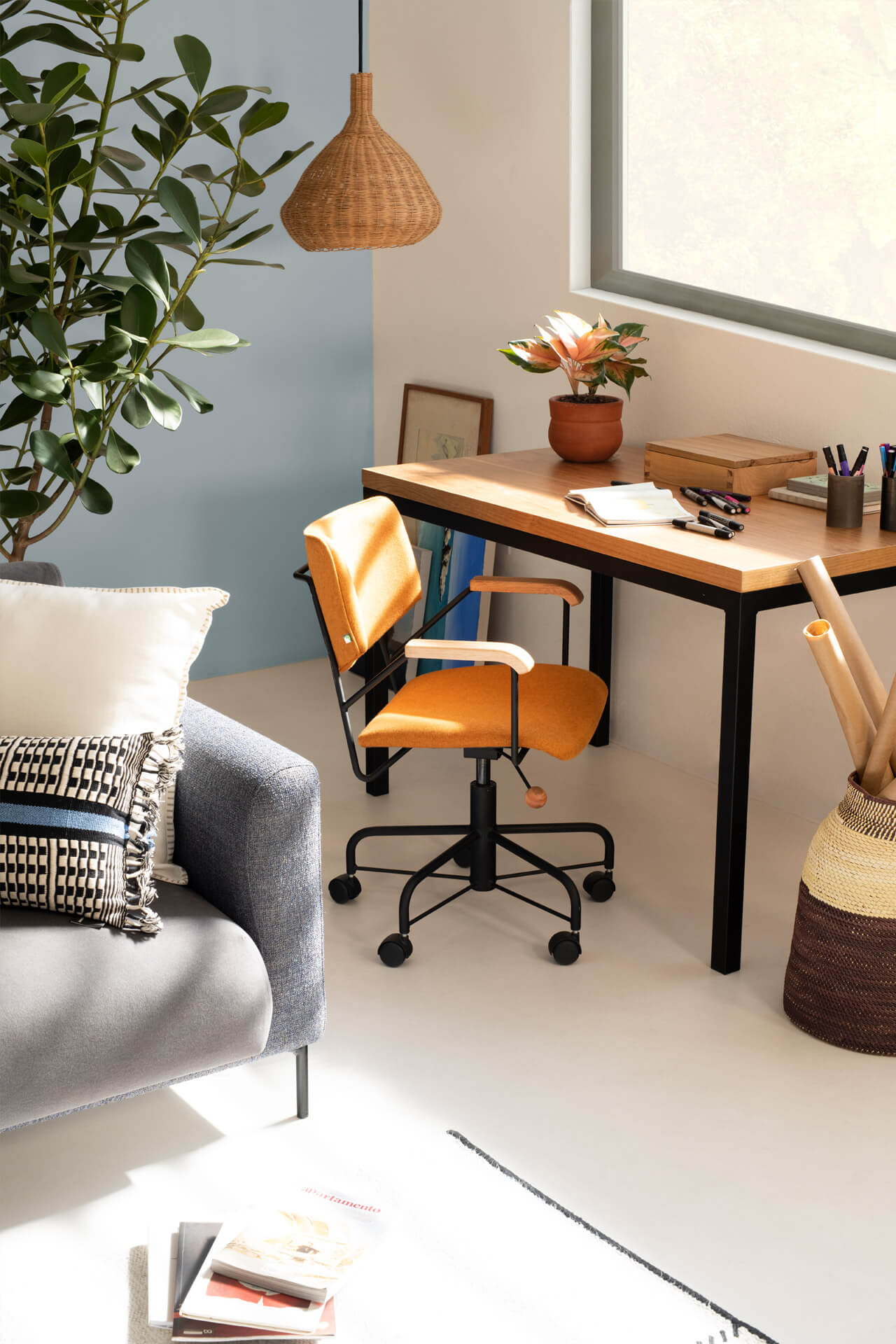 A Cadeira Serafina Home Office com braços possui traços modernos, retratados sobre uma base de desenho exclusivo. A estrutura tubular de aço maciço – que vai do assento ao encosto – garante o conforto ao sentar. A regulagem da altura é feita por meio de uma manopla de madeira torneada, que dá todo um charme à peça. Além de linda, é ideal para enfrentar dias intensos no trabalho.Disponível também na versão sem braços..