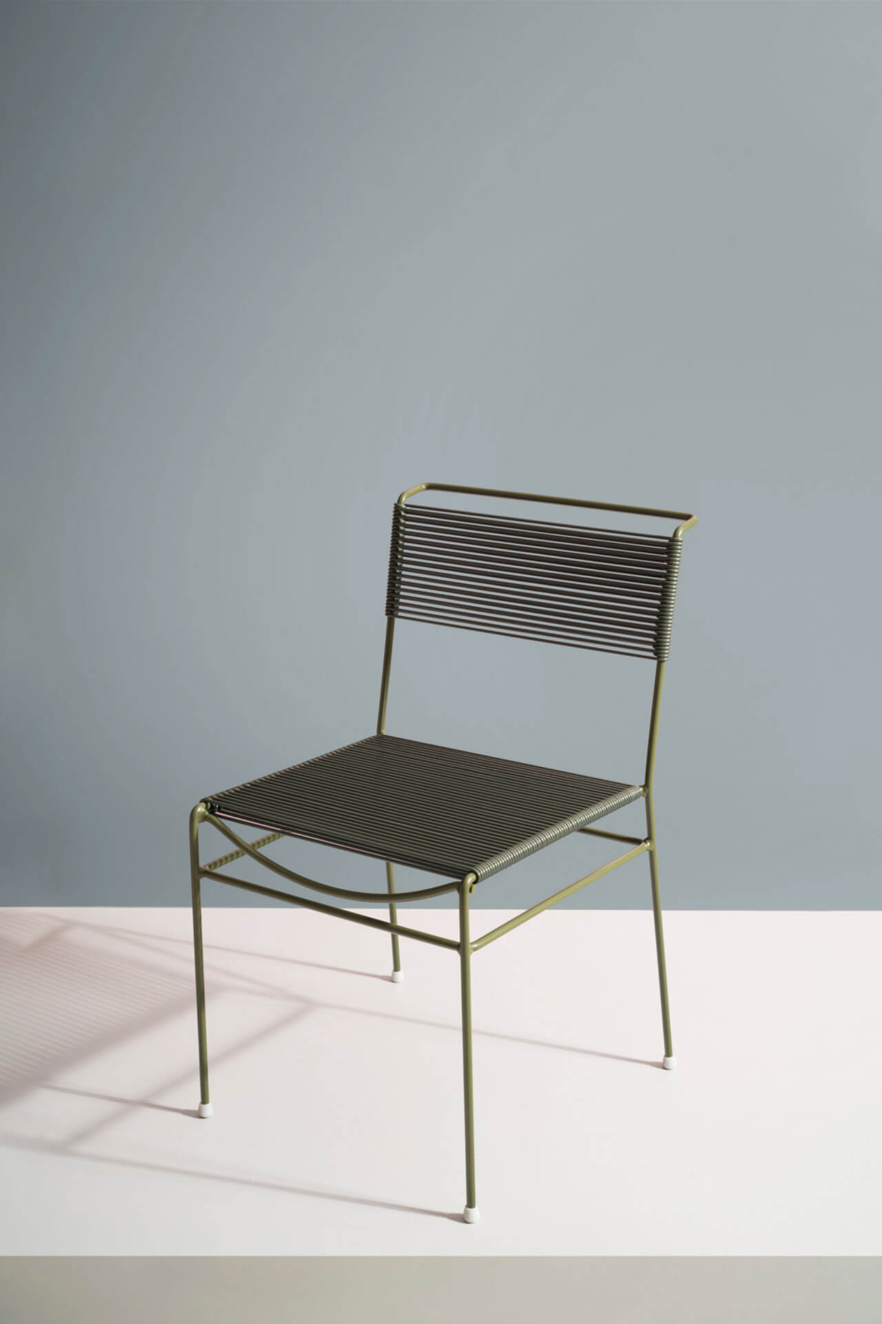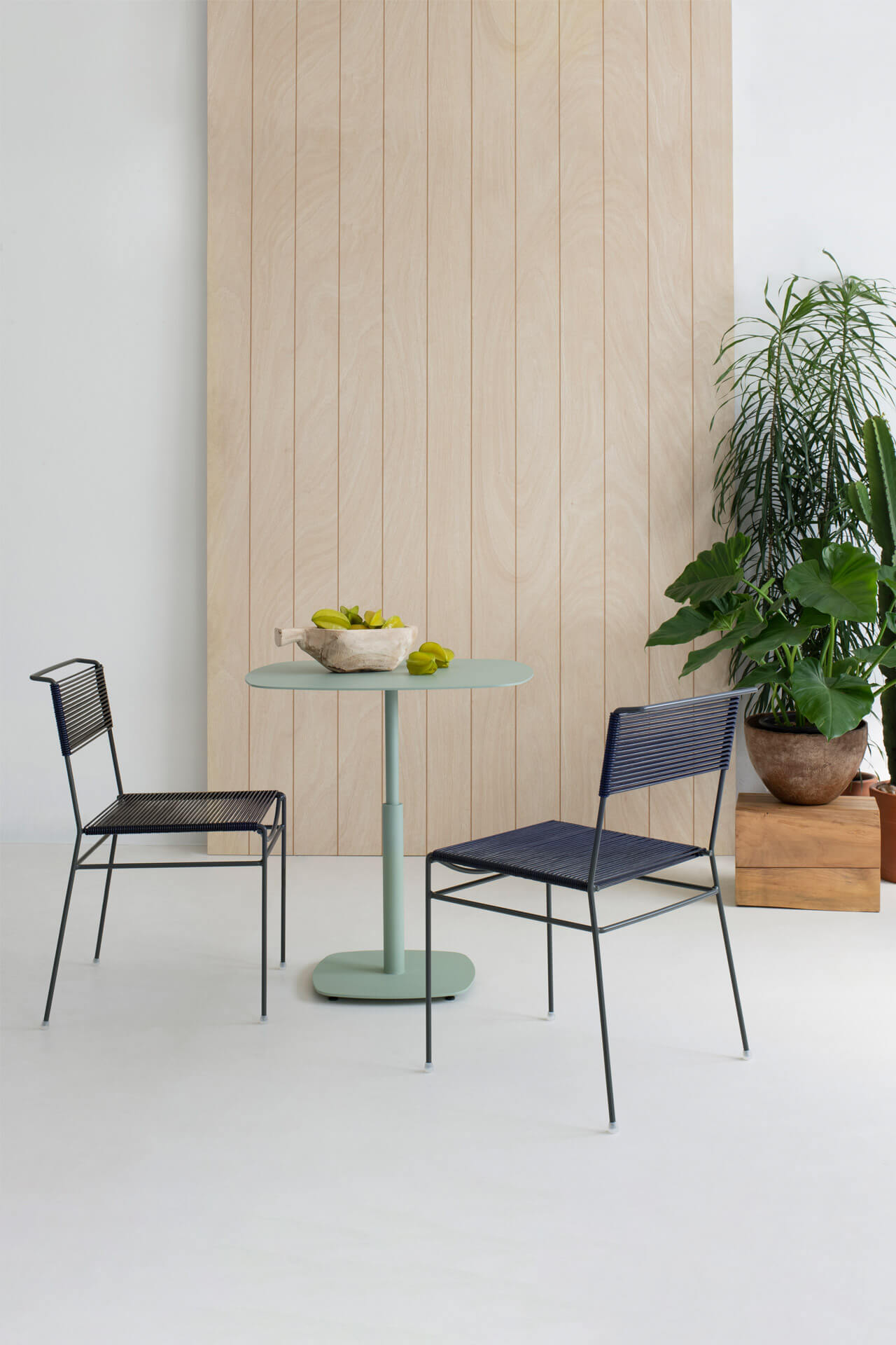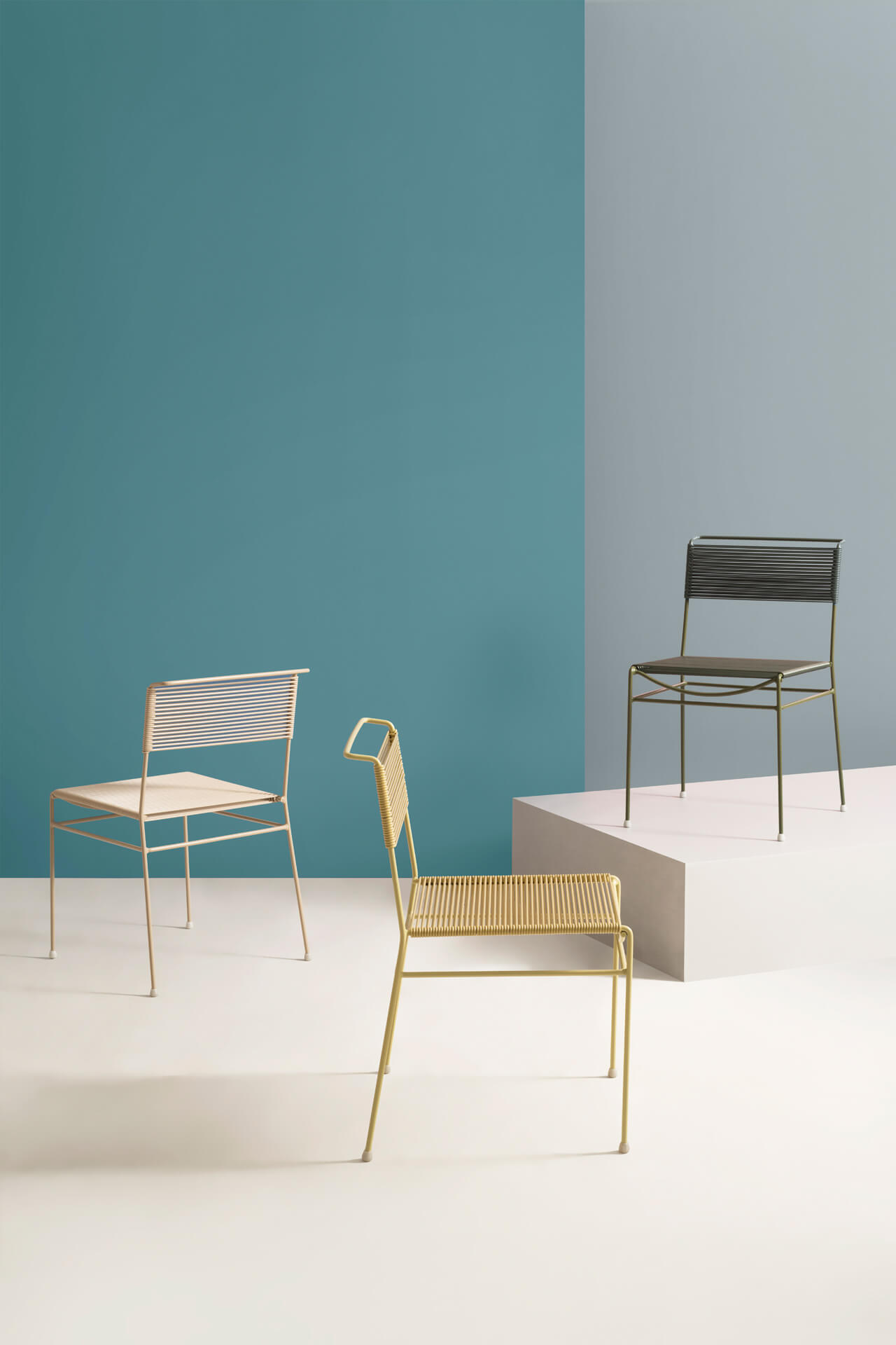 Em linha há mais de 35 anos, a Cadeira Spaghetti é um produto icônico do designer Fernando Jaeger. Sua estrutura é feita de aço maciço com pintura a pó - e o assento e encosto são enrolados manualmente com espaguete (tradicional material encontrado em diversas casas brasileiras). Ao longo dos anos, houve muitas atualizações de cores para a linha, além de novas versões do produto (poltrona, cadeira alta e média, banquetas e mini cadeira para crianças). A Cadeira Spaghetti é empilhável.