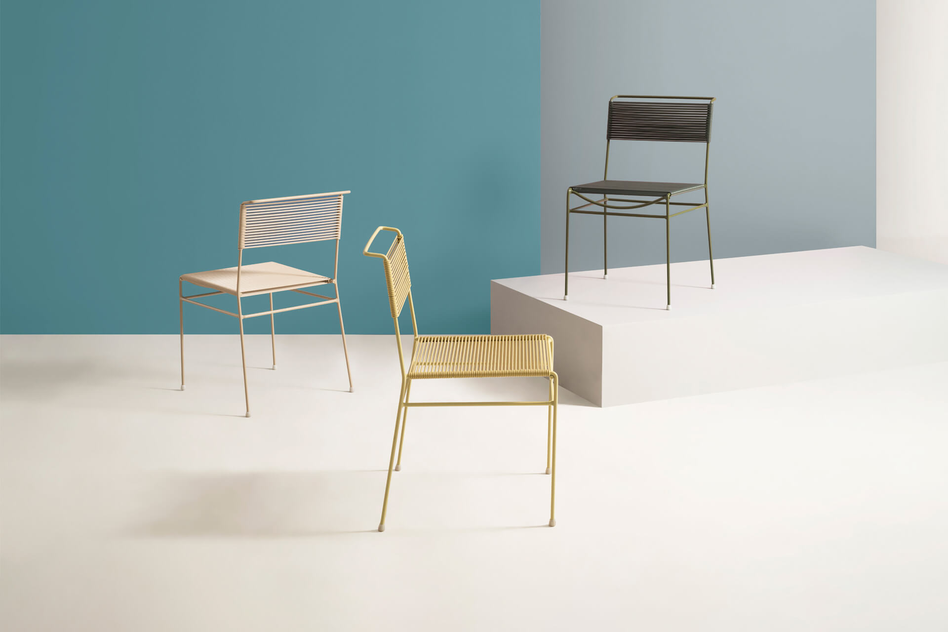 Em linha há mais de 35 anos, a Cadeira Spaghetti é um produto icônico do designer Fernando Jaeger. Sua estrutura é feita de aço maciço com pintura a pó - e o assento e encosto são enrolados manualmente com espaguete (tradicional material encontrado em diversas casas brasileiras). Ao longo dos anos, houve muitas atualizações de cores para a linha, além de novas versões do produto (poltrona, cadeira alta e média, banquetas e mini cadeira para crianças). A Cadeira Spaghetti é empilhável.