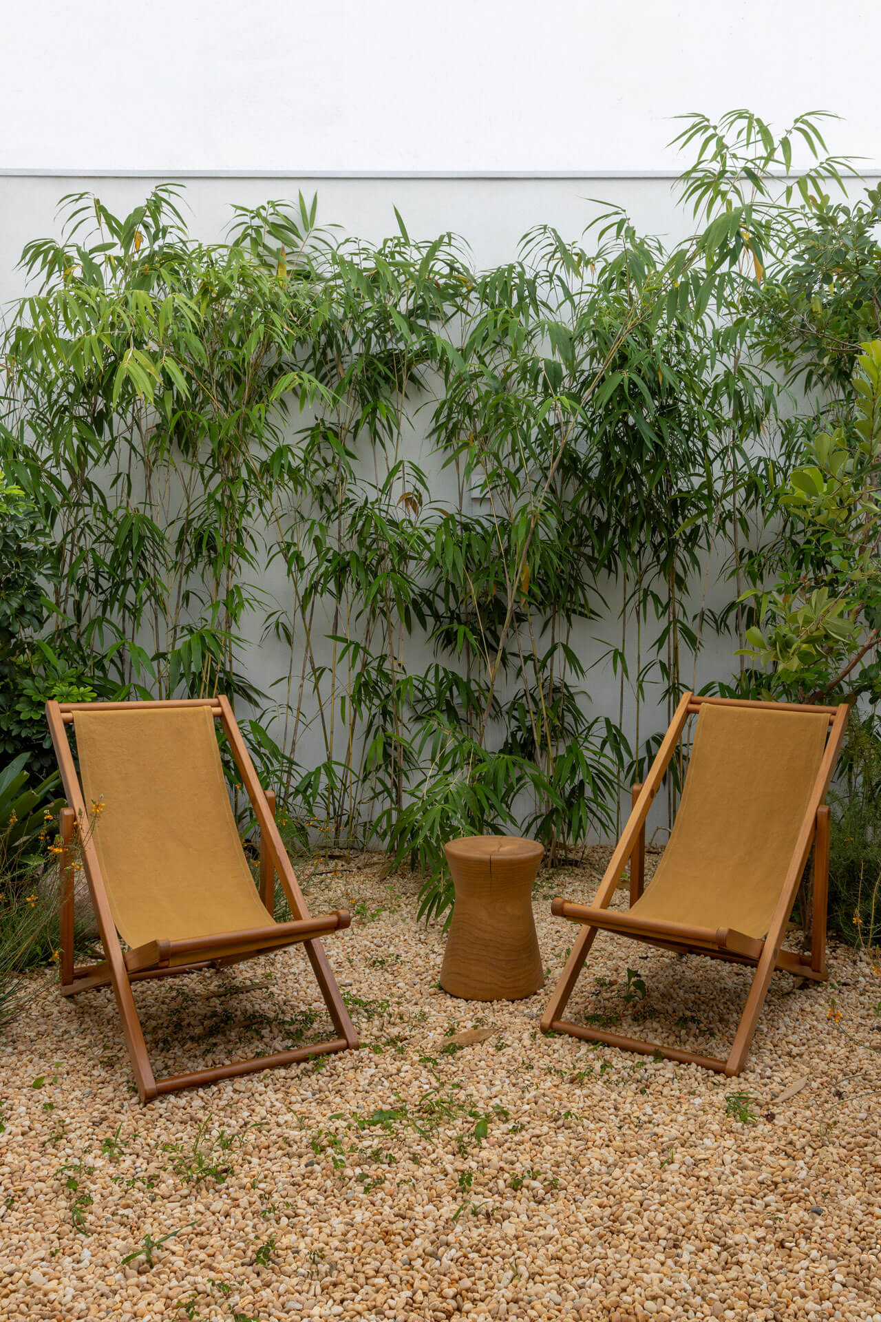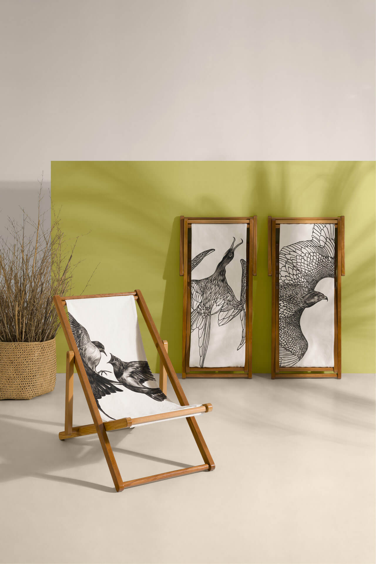 A Espreguiçadeira Carioca possui estrutura de madeira maciça natural, dobrável, com regulagem de inclinação e o tecido do assento pode ser trocado facilmente.A espreguiçadeira Carioca é ideal para ambiente externo coberto, sem chuva e sol direto. Pensada para momentos de pura descontração.