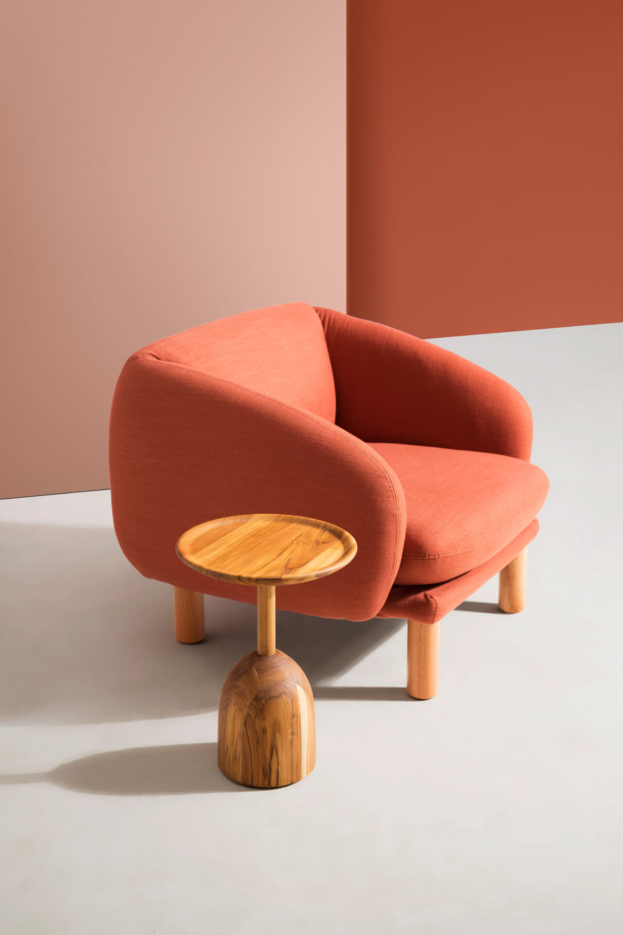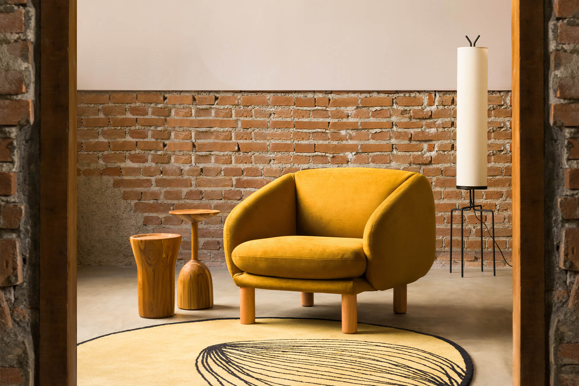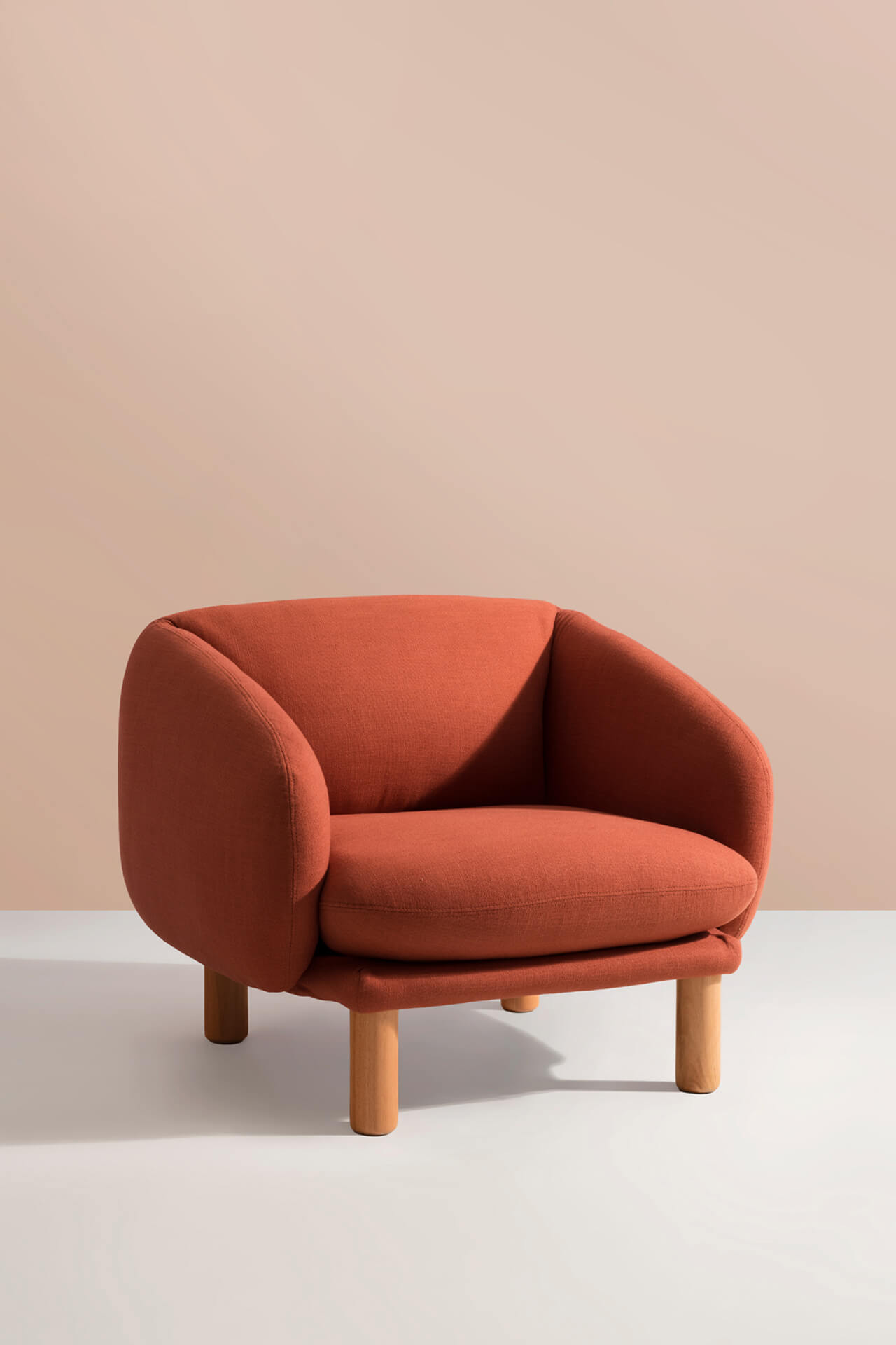 A Poltrona Ceci mantém todo o conforto da linha em uma versão compacta, perfeita para compor diferentes espaços. Seu design arredondado e convidativo te abraça ao sentar. Disponível com pés estofados ou em madeira.