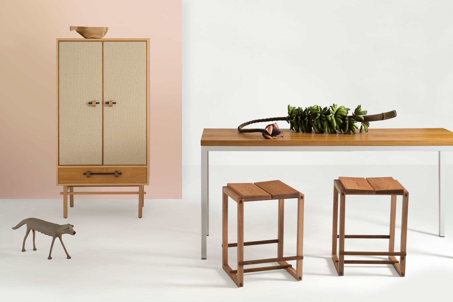 Em busca de uma banqueta mais clean, o Banco Chico Médio foi projetado. Com dimensões generosas, a peça dá continuidade a linha Chico, dessa vez com o assento em madeira maciça dividido em duas tábuas inclinadas. O protagonismo do banco fica por conta da madeira e de seus encaixes detalhados. Disponível também na versão com assento em couro.
