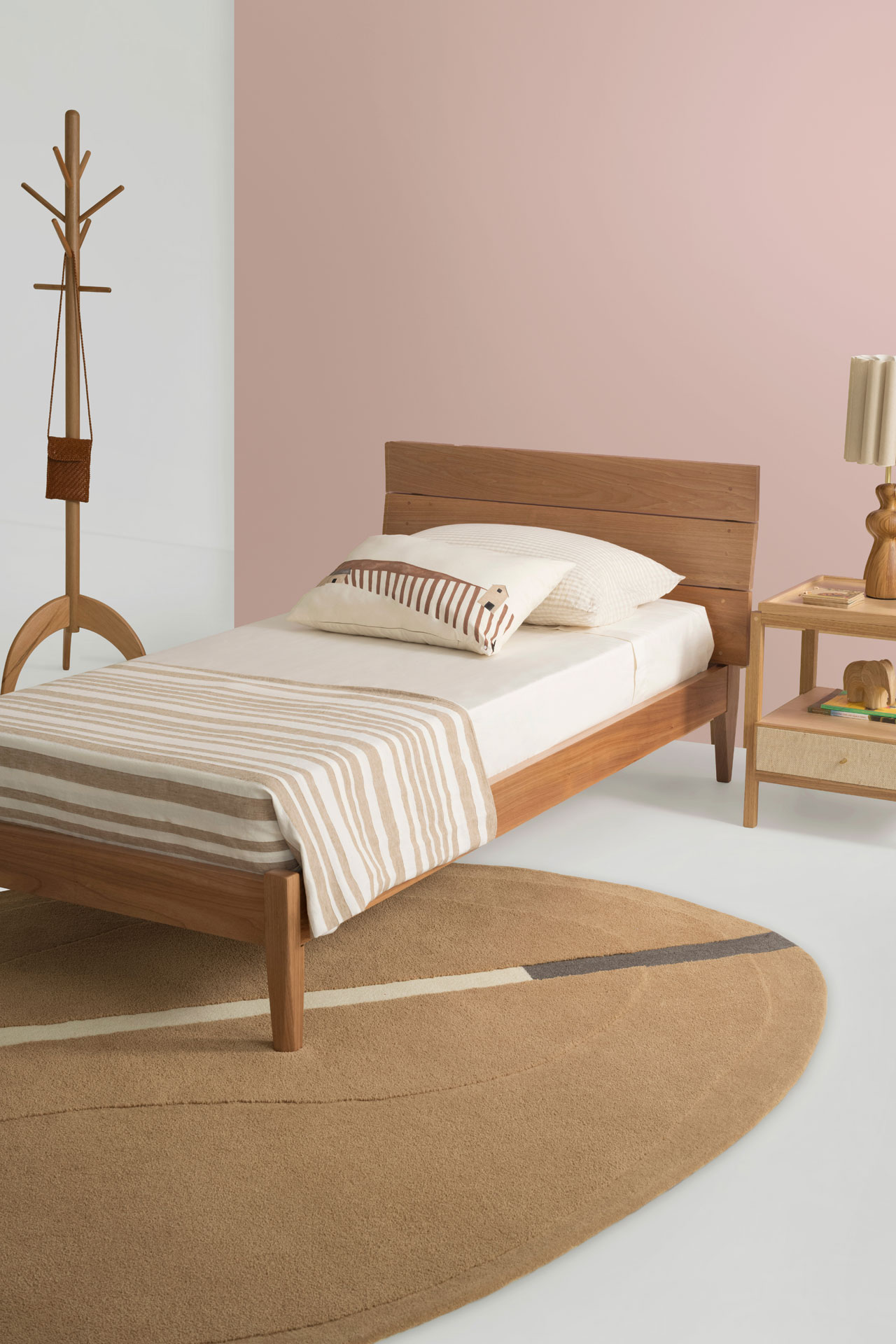 A mesa de cabeceira Chico traz a beleza das linhas retas combinada com uma materialidade apurada.