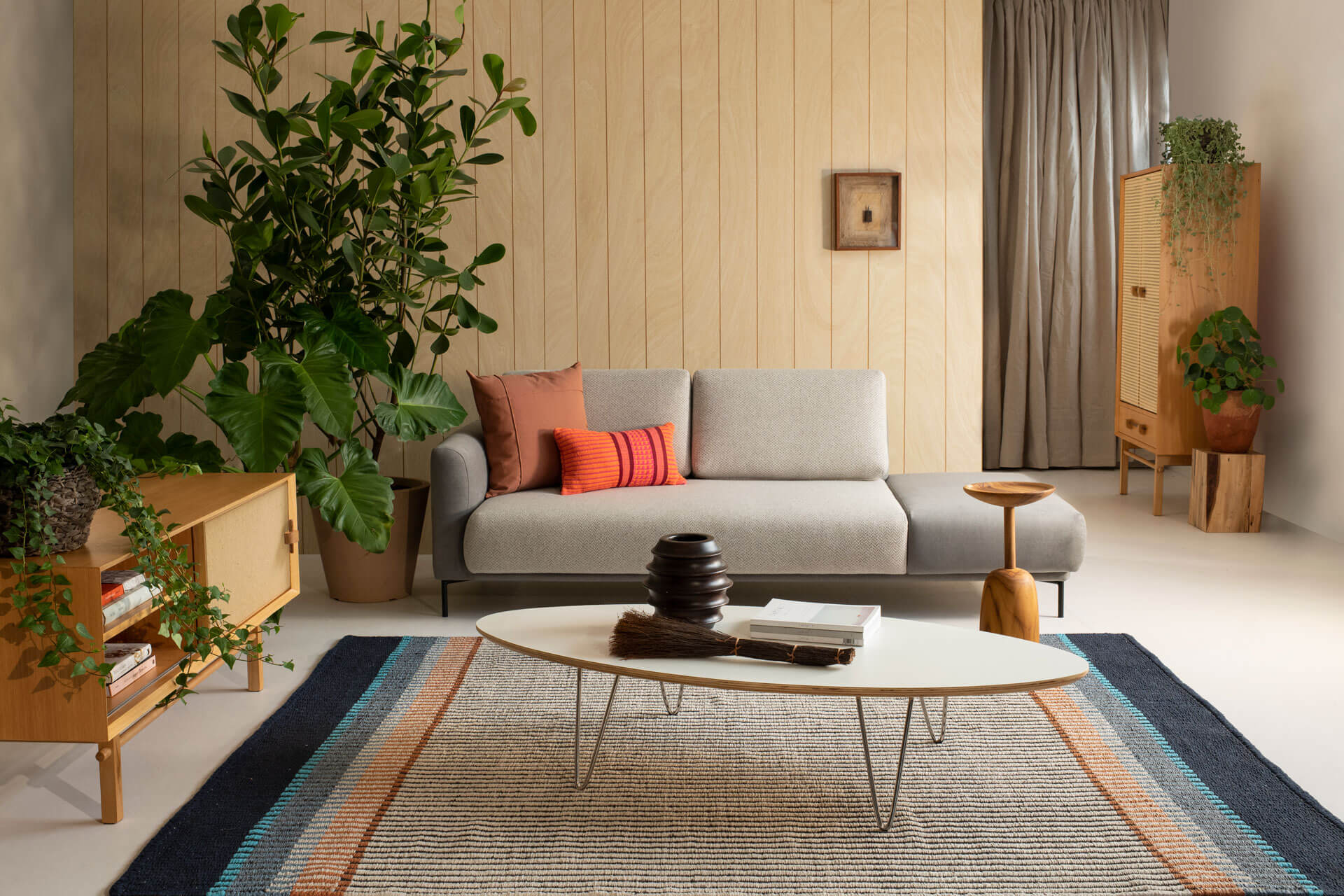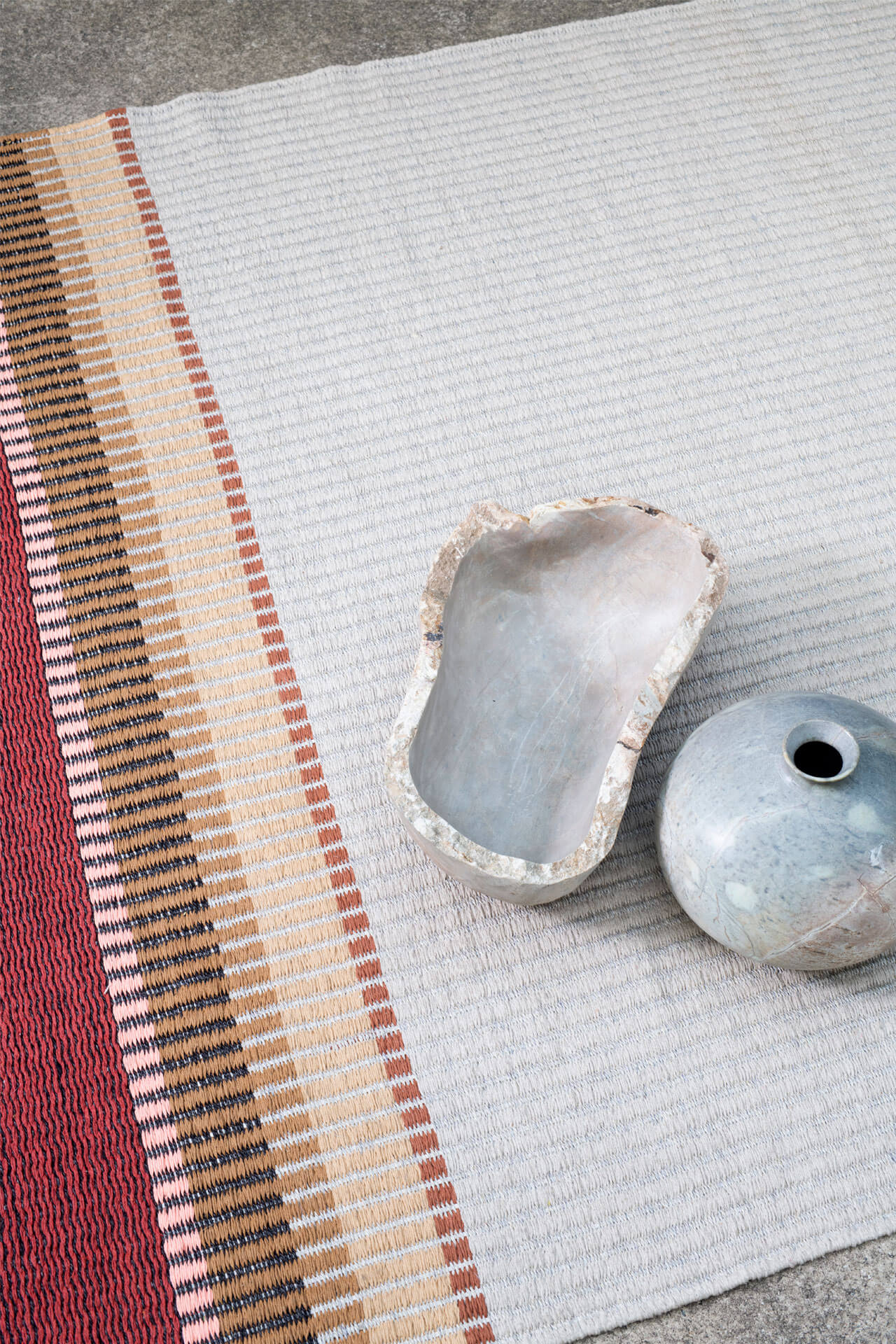 Ao projetar o Tapete Cocar, acrescentamos cor na coleção de tapetes FJ Pronto pra Levar! Seu desenho parte de uma base neutra e ganha cor e charme nas extremidades. Disponível em quatro versões de cores: rosa, azul, verde e terroso.