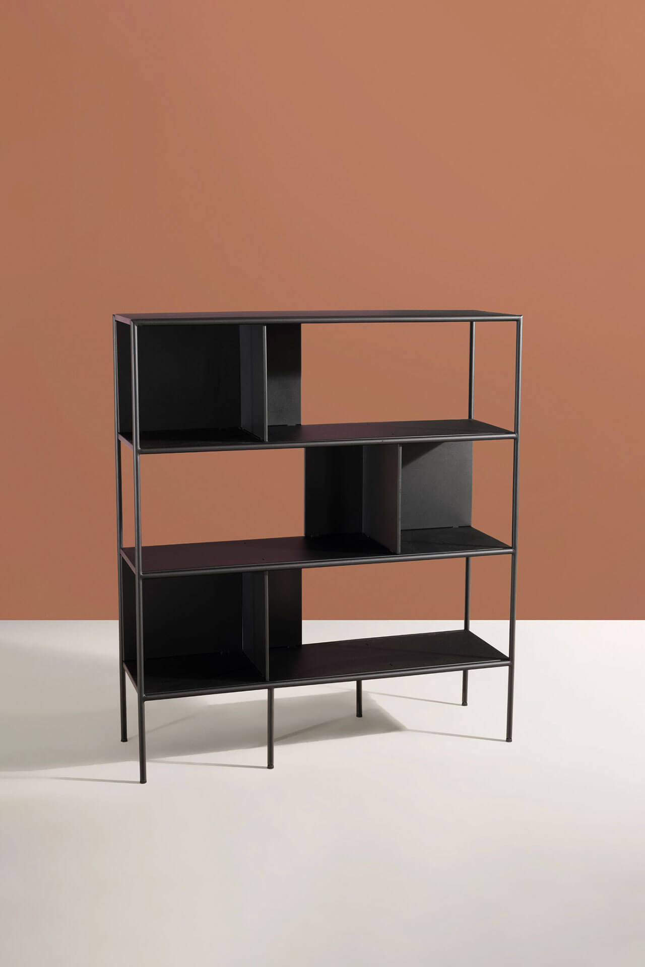 Com desenho divertido e estilo industrial, a estante Flik é uma peça prática, resistente e útil, que se encaixa em vários espaços e atende diversos tipos de uso. Toda feita em metal e composta por nichos vazados e fechados, pode ser usada em quartos, escritórios, salas, cozinhas, etc. Disponível em três versões e diversas cores.