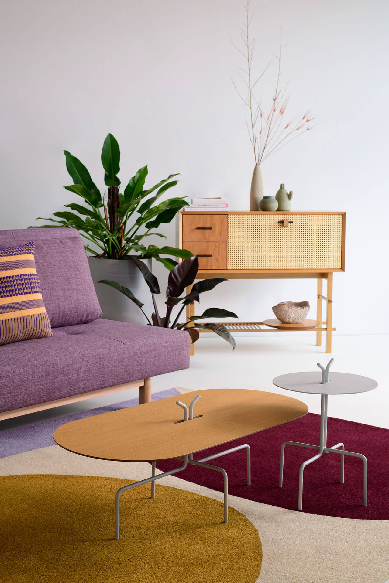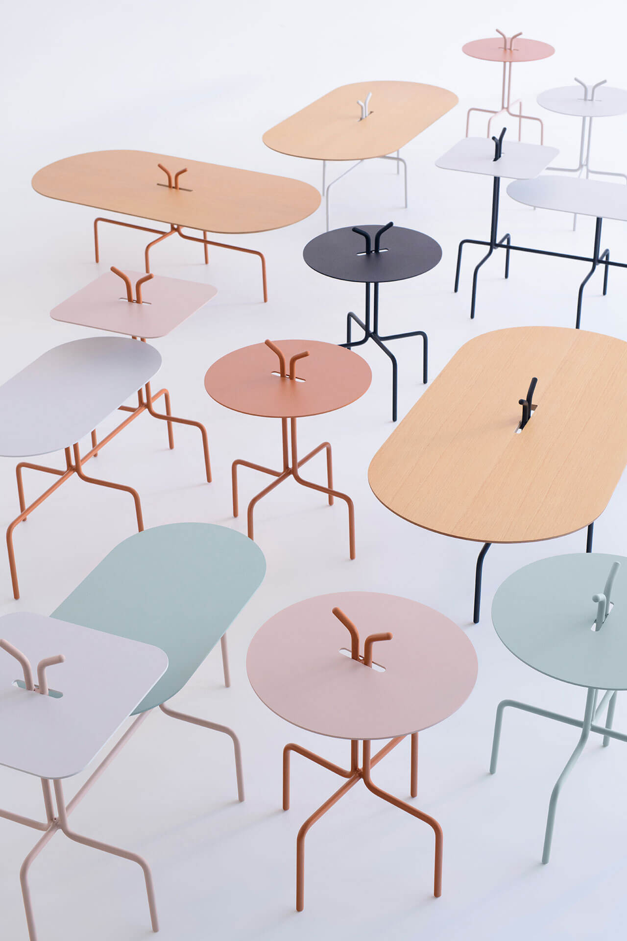 As divertidas e coloridas mesas Formiga estão disponíveis em 2 versões: mesa de centro e mesa lateral além de várias opções de acabamento. Recebem uma alça que ajuda a locomoção do produto – que muito lembra as antenas da formiga, dando nome ao produto. Seus desenhos permitem que sejam usadas misturadas, formando várias possibilidades de composições.