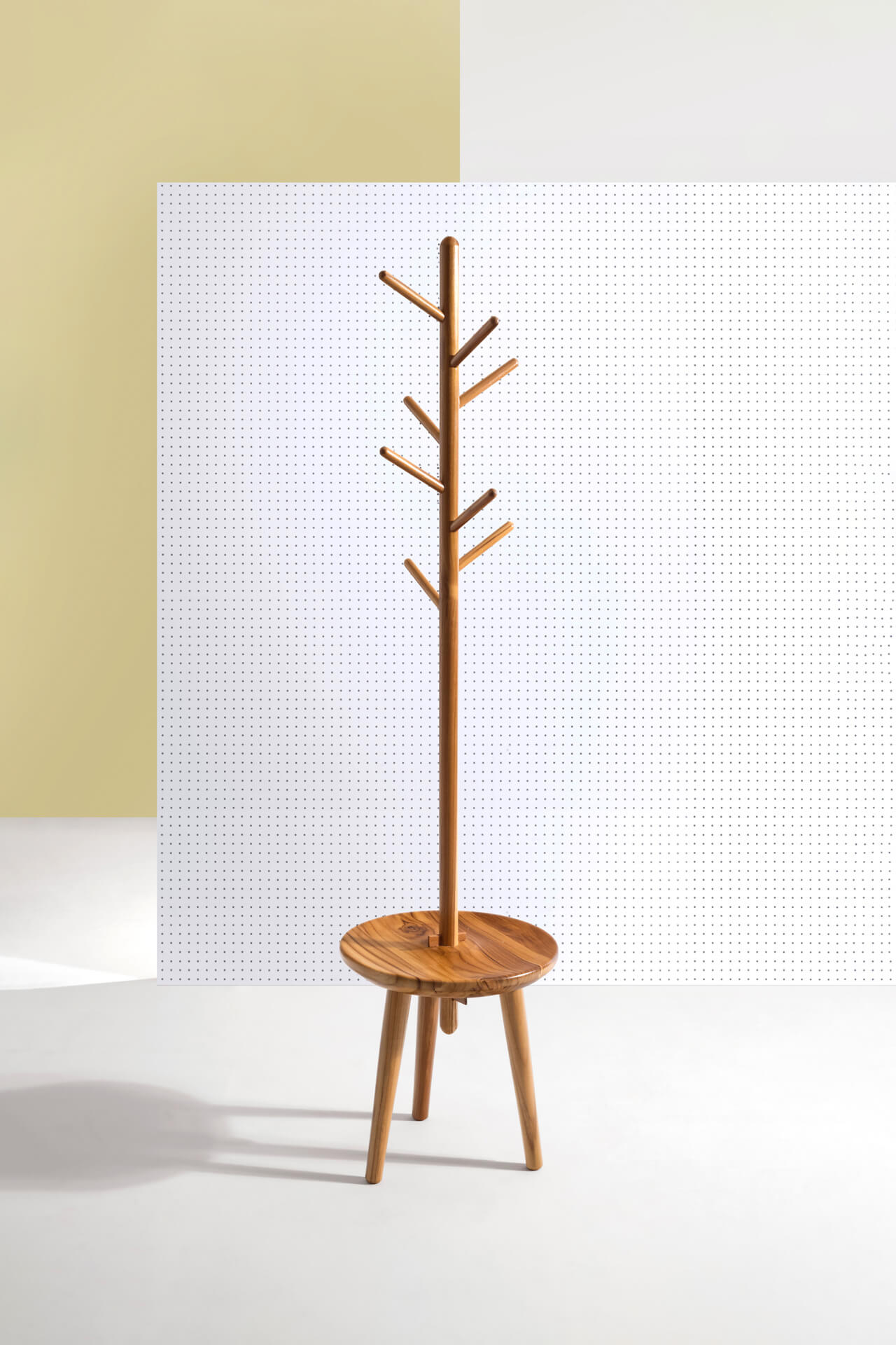 Uma peça versátil para ser utilizada na sala, no quarto e em outros ambientes. O Cabideiro Galho, lançado primeiramente no Atelier, valoriza a madeira maciça e técnicas antigas de marcenaria. Os diversos ganchos, que lembram galhos de árvores, são bem distribuídos - facilitando assim o armazenamento de peças. A base possui um charmoso escavado que serve para apoiar pequenos objetos, como celular, chaves, livros e joias.