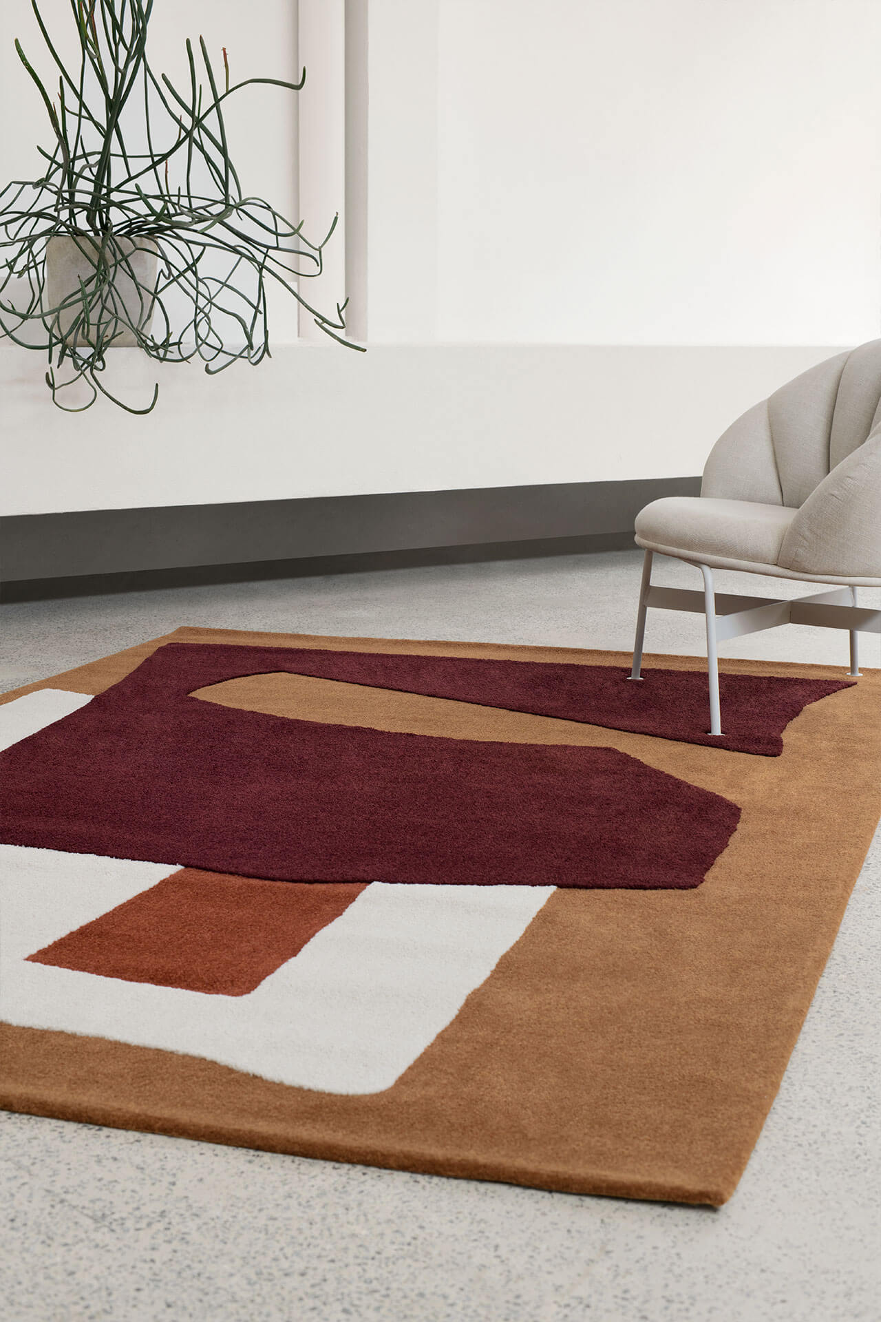 O tapete Helio foi desenhado pelo Estúdio Ouriço com exclusividade para a FJ Pronto pra levar!. Inspirado na Arte Concreta, possui formas em diferentes alturas de fio. Disponível em diversas combinações de cores, é fabricado em Nylon *Econyl® e pode ser feito em várias medidas.