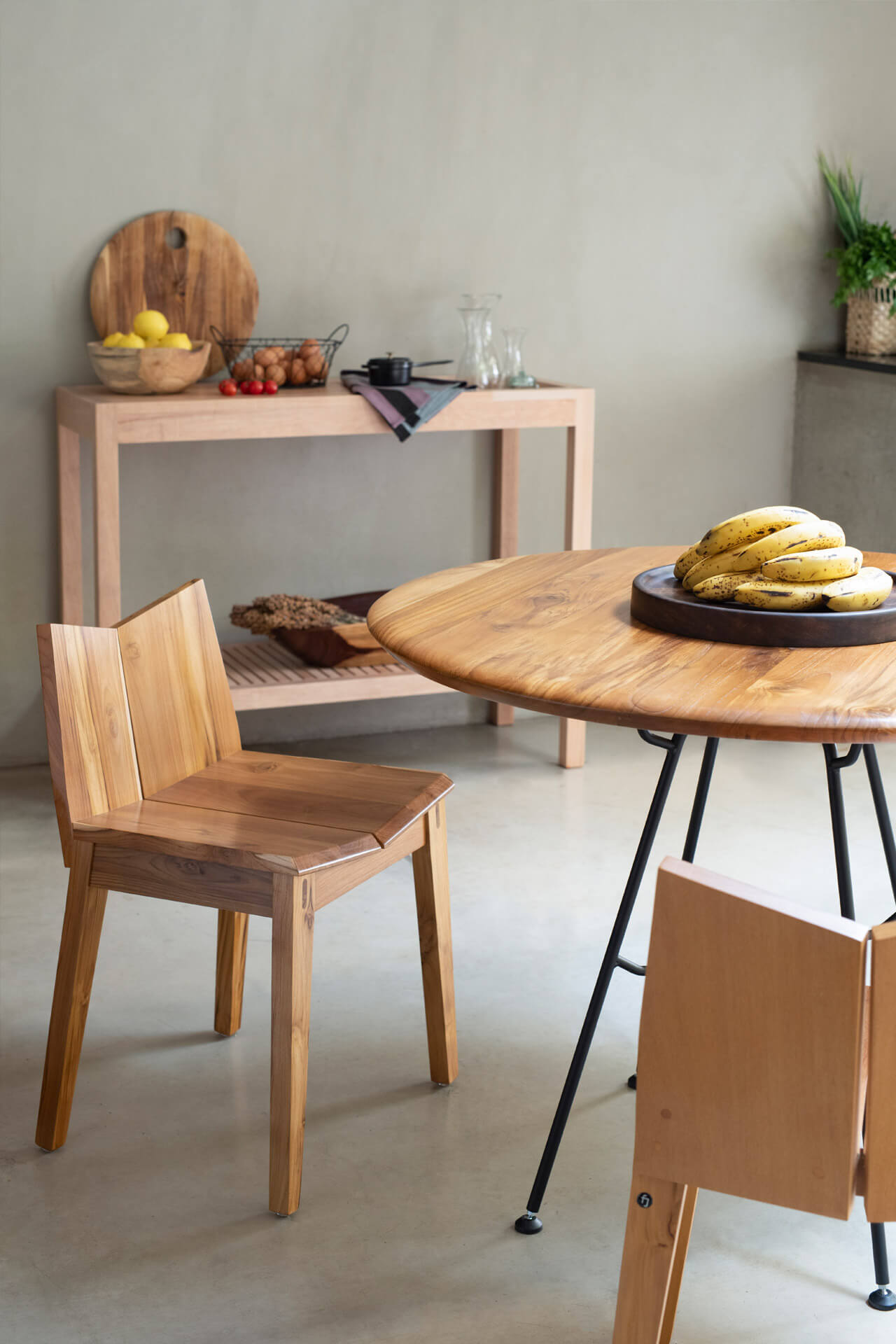 A Cadeira Kinzo segue a mesma proposta da linha: desenho limpo, linhas retas e referências minimalistas japonesas, valorizando o uso da madeira natural maciça. As tábuas inclinadas, os assentos divididos e o chanfro na frente do assento — além de caracterizarem a família — trazem conforto ao sentar. Com proporções menores, a Kinzo é ideal para pequenos ambientes.
