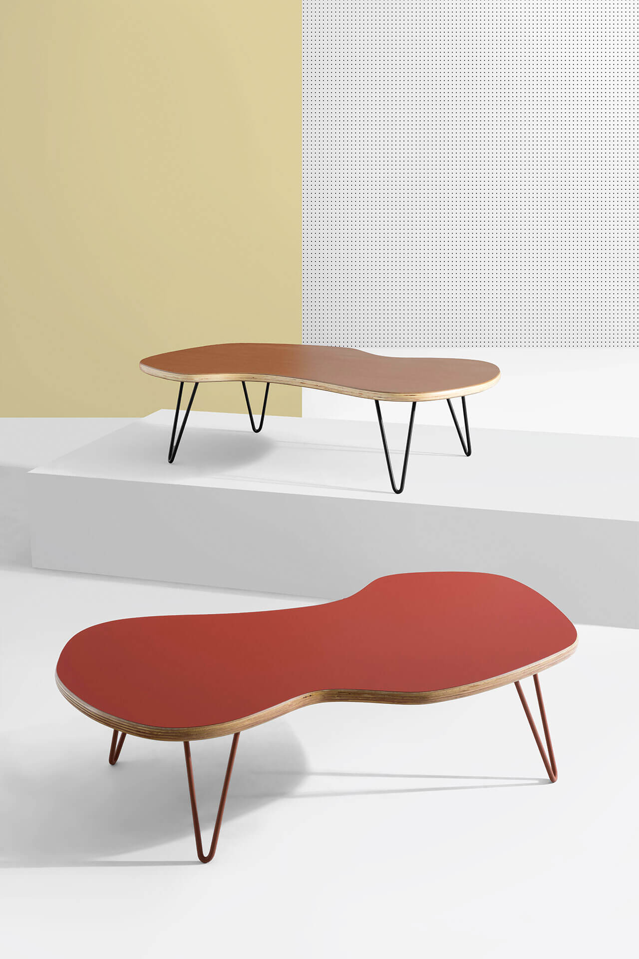 A Mesa de Centro Lago é ideal para uma boa circulação nos ambientes, graças ao seu tampo de desenho orgânico que também traz descontração. São duas opções de tampo: Madeira ou Formica com várias opções de cores e os pés em aço carbono - das mais neutras às coloridas. Pode também ser feita em madeira natural.