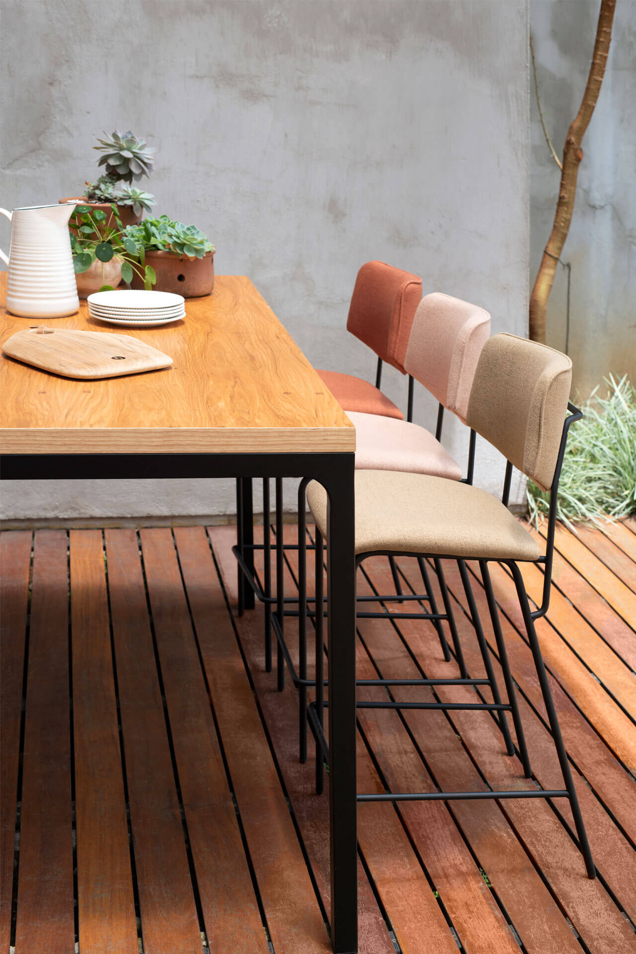 Sucesso há anos, a Linha Loft permanece em constante renovação e traz diversas peças para salas de jantar, estar, quartos e office. Seu desenho simples valoriza a combinação da madeira com o metal. A Mesa Loft Alta exibe um desenho funcional, diferente do comum - o que a torna perfeita para ser utilizada com banquetas e cadeiras altas em varandas, sala de jantar e ambientes corporativos.