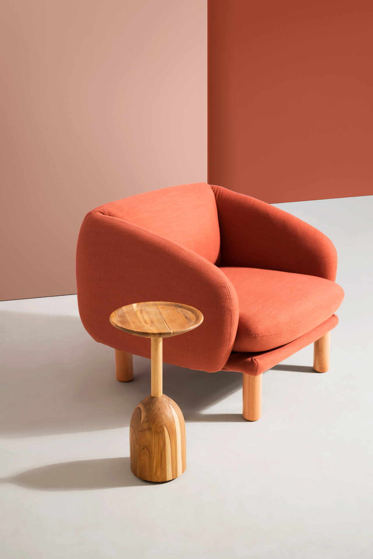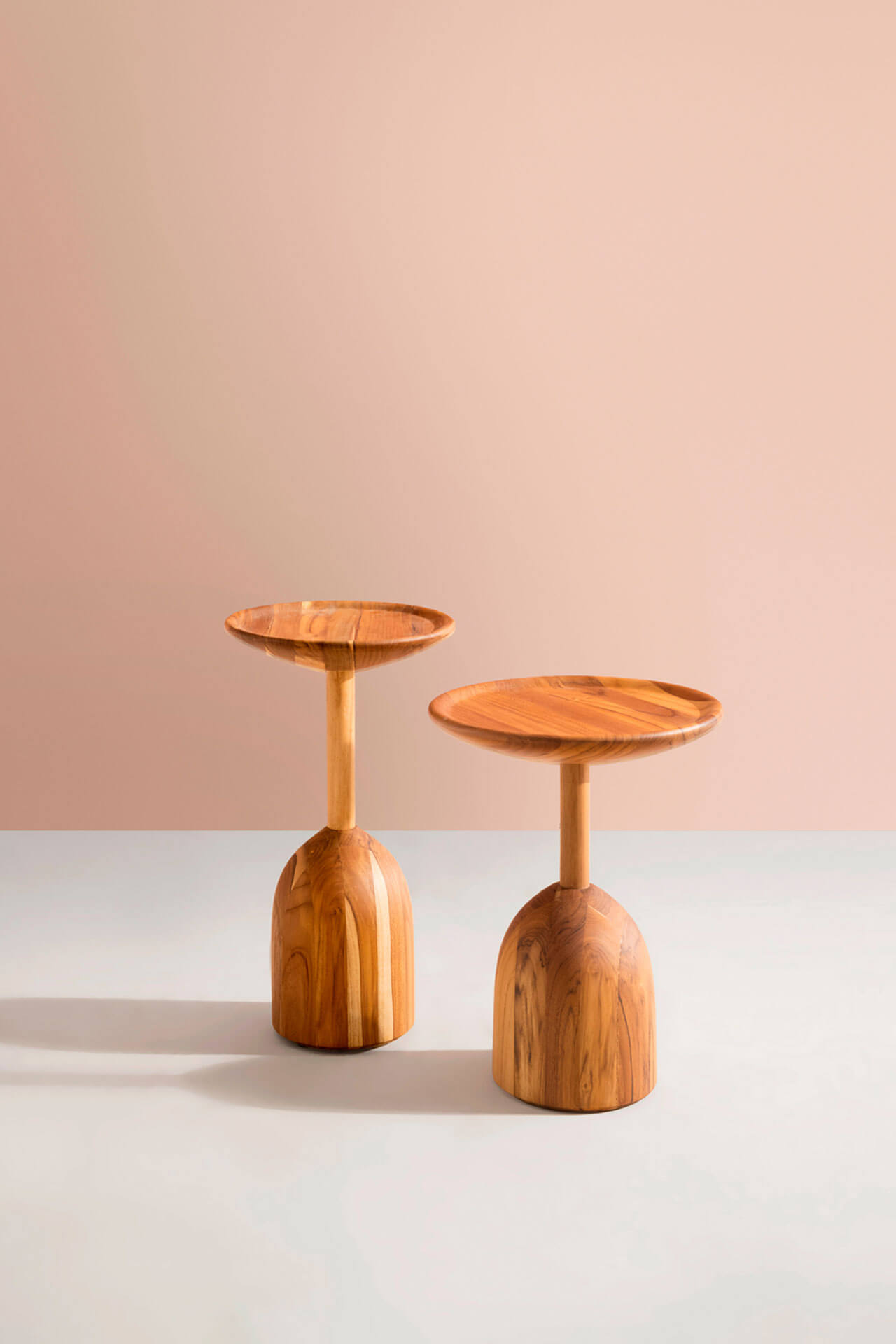 A mesa lateral Bulbo possui desenho delicado e é feita toda em madeira maciça torneada. Possui tampo com escavado e uma generosa base que remete ao bulbo das plantas. Disponível em dois tamanhos, é uma peça versátil e charmosa, que pode ser usada sozinha ou combinada com a Mesa lateral Baobá.