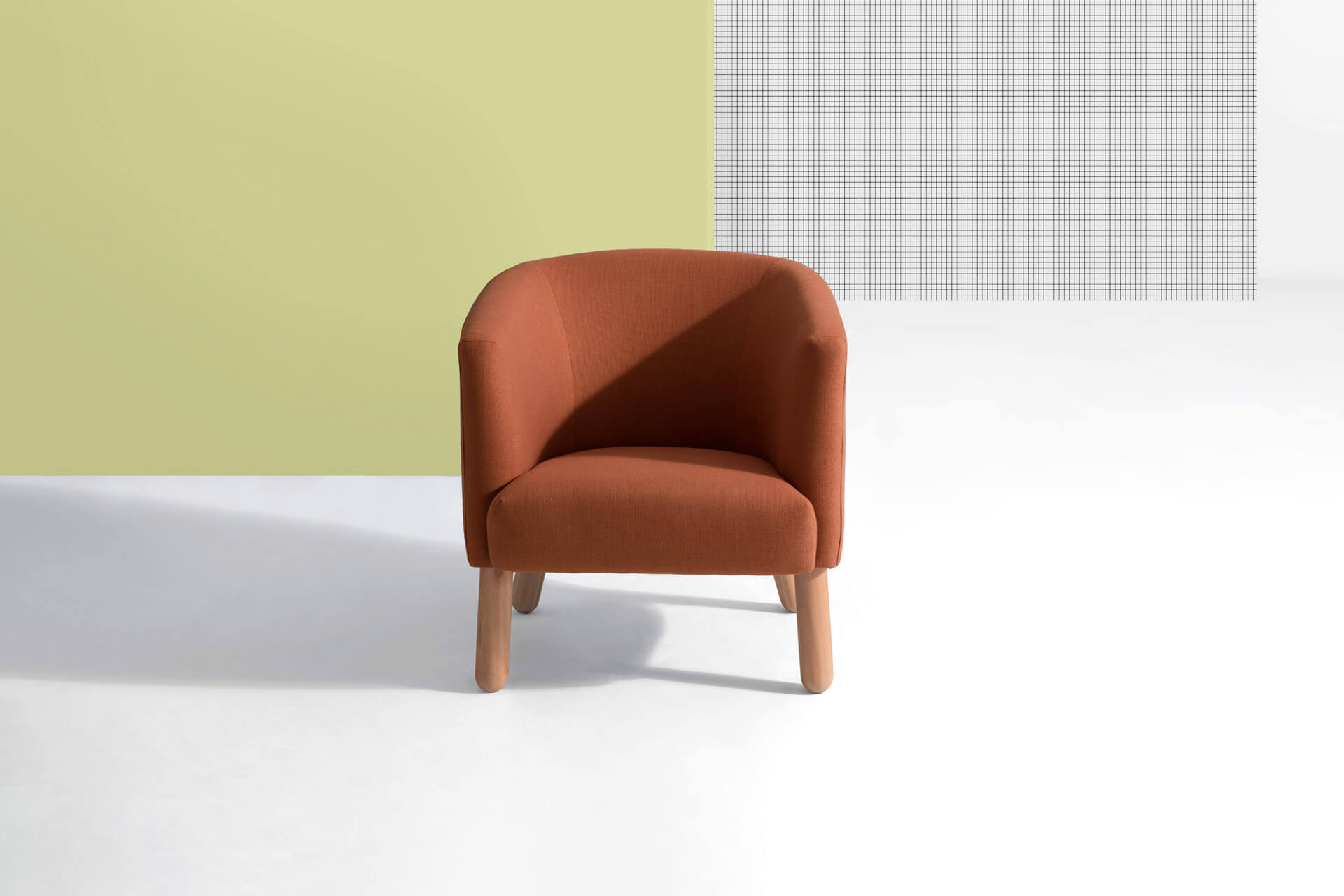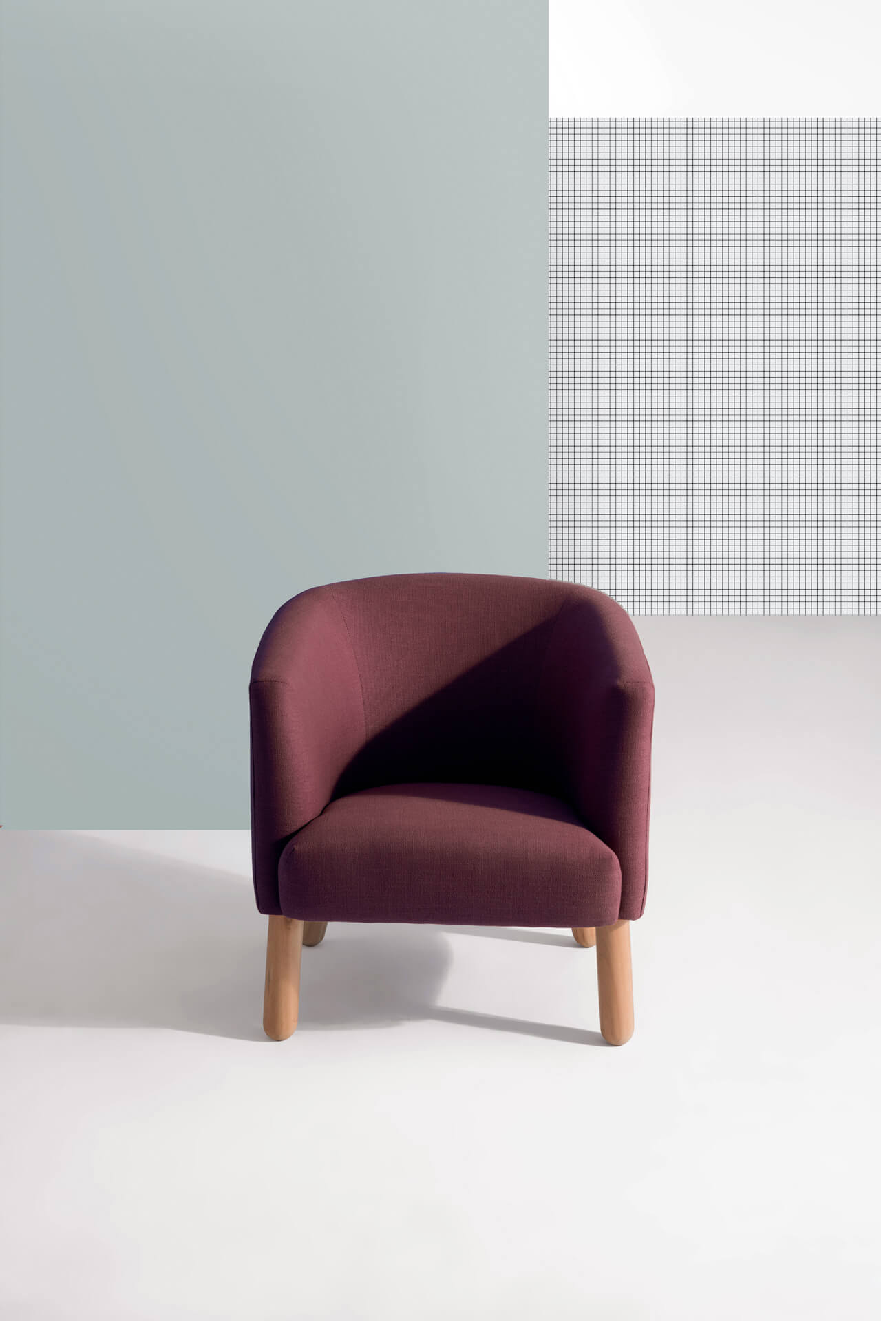Seguindo o design de formas arredondadas da linha Milu, a Poltrona Milu ganha uma nova versão com pés arredondados de madeira maciça. Compacta e funcional, conta com o mesmo nível de conforto pelo encosto igualmente curvo que envolve o corpo.