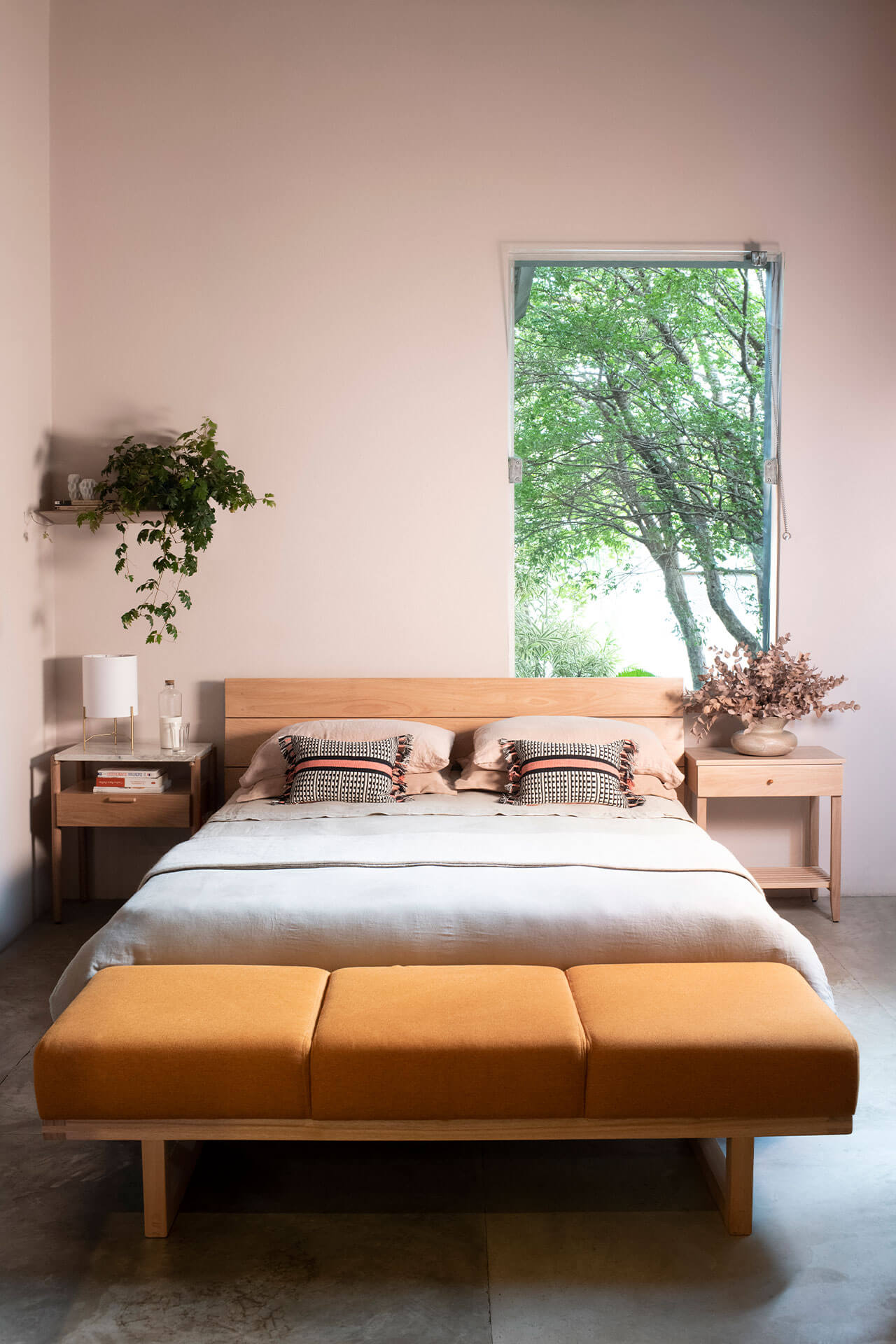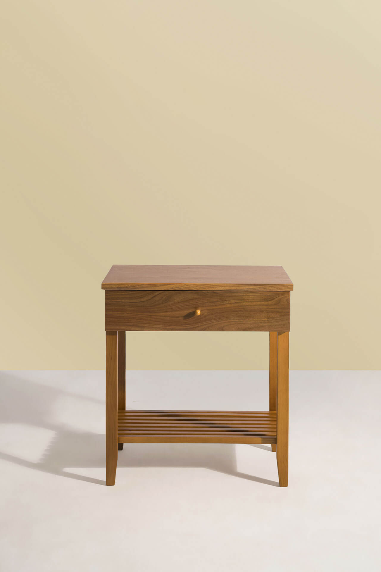 A Mesa de Cabeceira Nôa é feita inteiramente de madeira maciça, com desenho limpo e design funcional. Na versão maior, é ideal para espaços mais amplos.