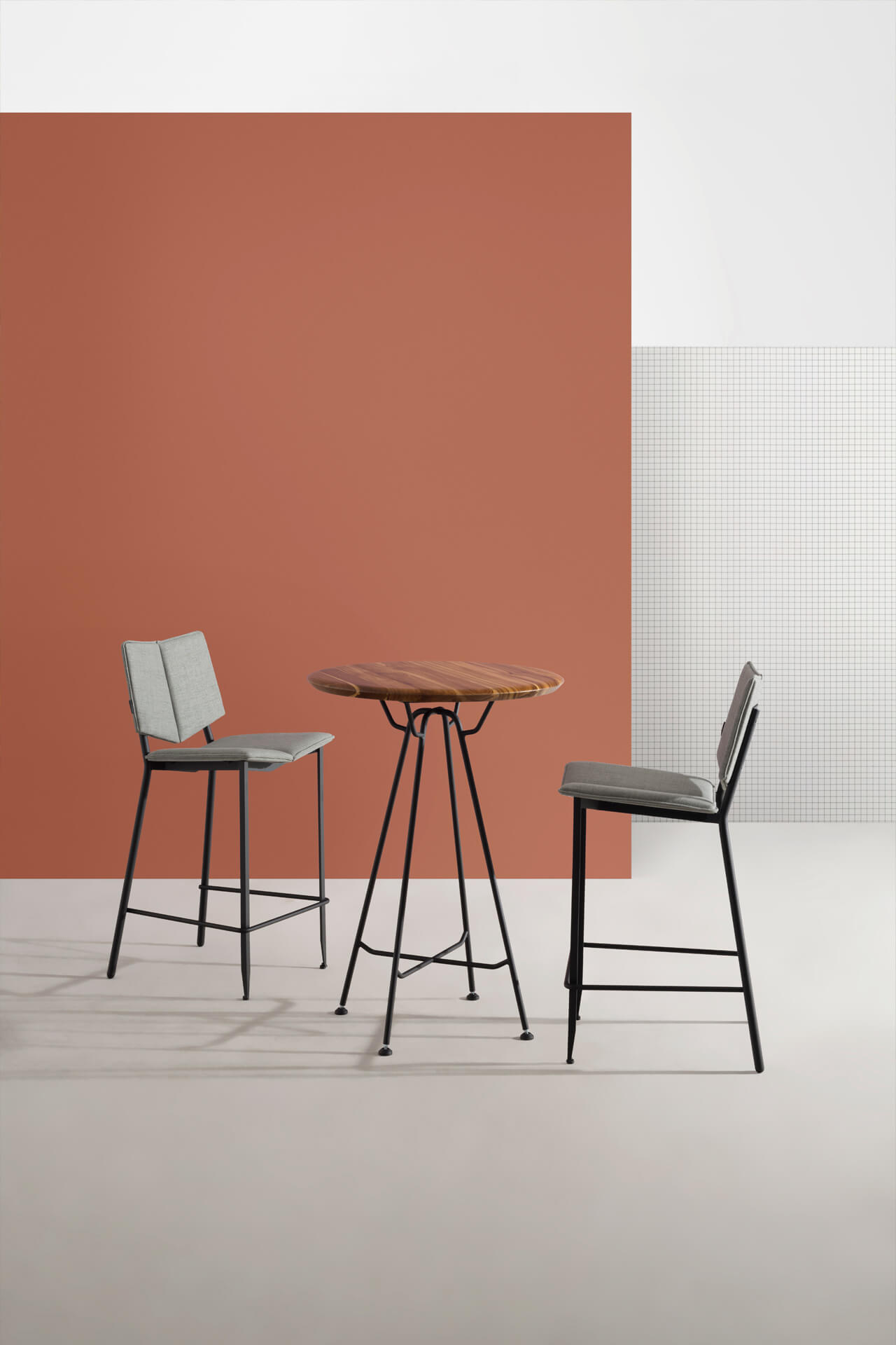 A linha Nômade foi criada a partir da pesquisa de um material pouco convencional para móveis – a cantoneira de aço – que se mostrou bastante eficaz, tanto na versatilidade e robustez, quanto na beleza.A peça exibe estilo industrial e desenho limpo e pode ser revestido nos mais diversos tipos de tecidos da nossa linha. Disponível no tamanho médio e alto – para mesas ou bancadas de 90 e 105cm, respectivamente.Conheça também a versão baixa.