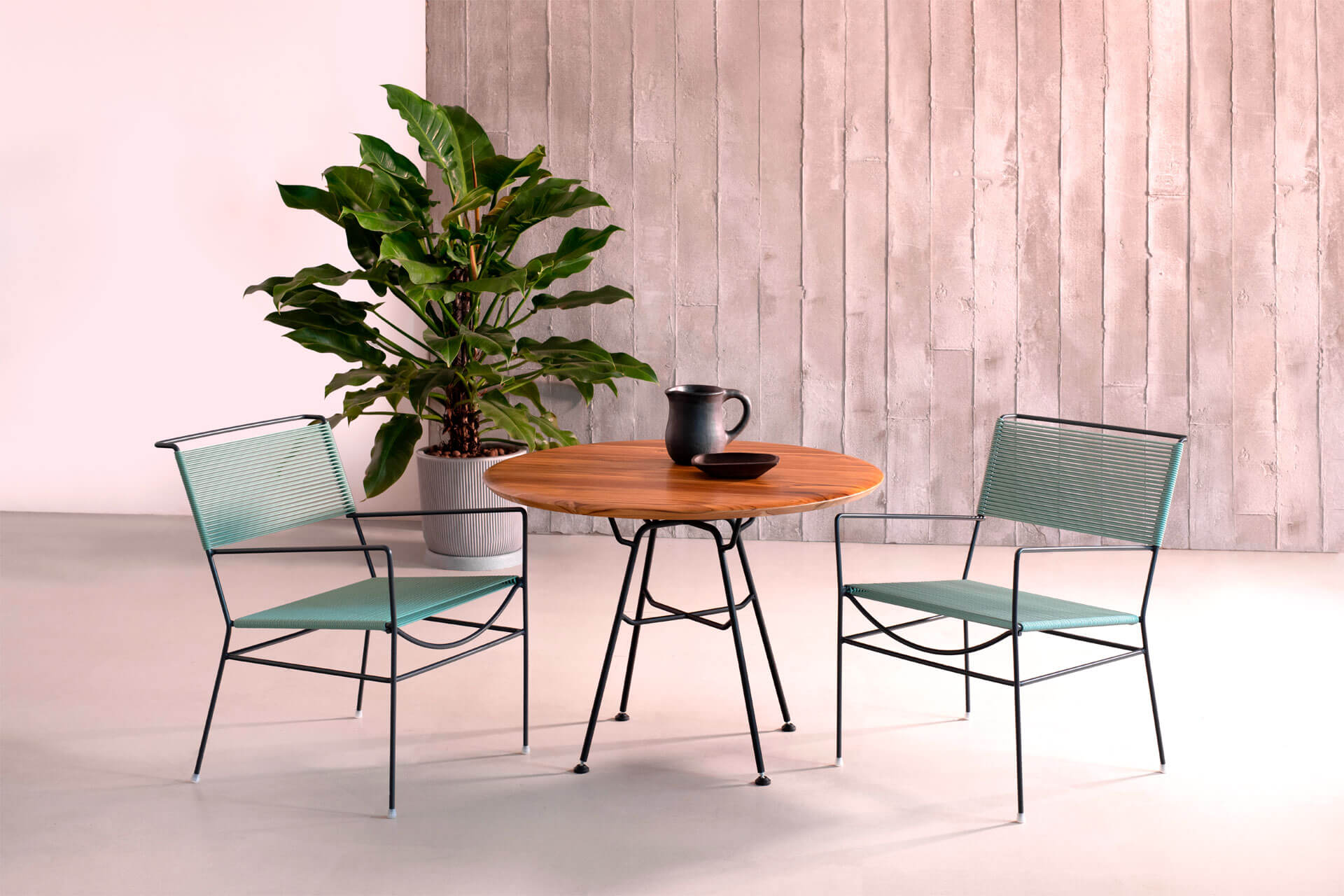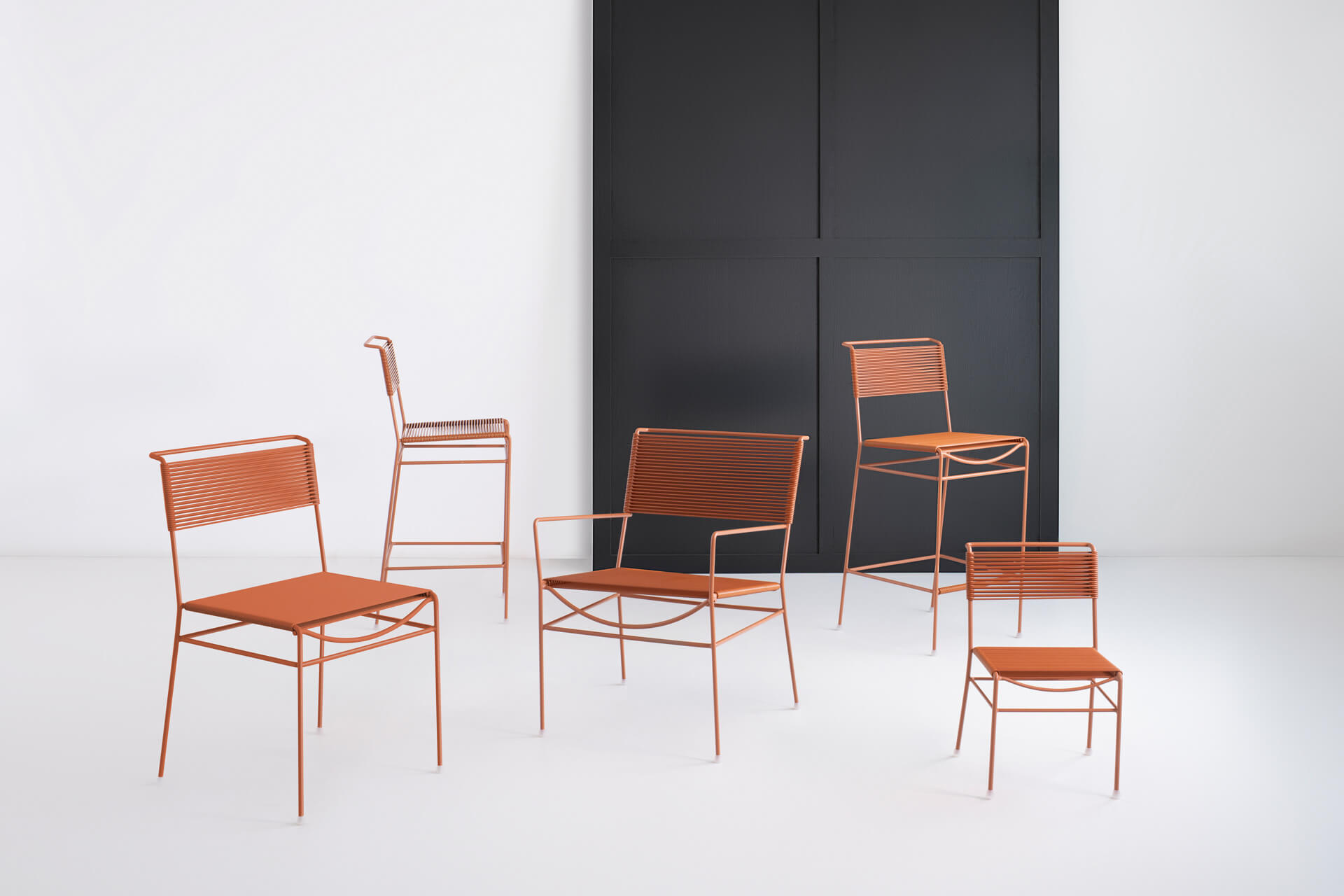 Em produção há muitos anos, e um ícone do designer Fernando Jaeger, a linha Spaghetti foi inspirada nas cadeiras para varandas - muito presentes no interior do Brasil. Sucesso de vendas desde o seu lançamento, a linha ganhou novos produtos ao longo dos anos, como poltrona, cadeira alta, média e mini (para crianças).