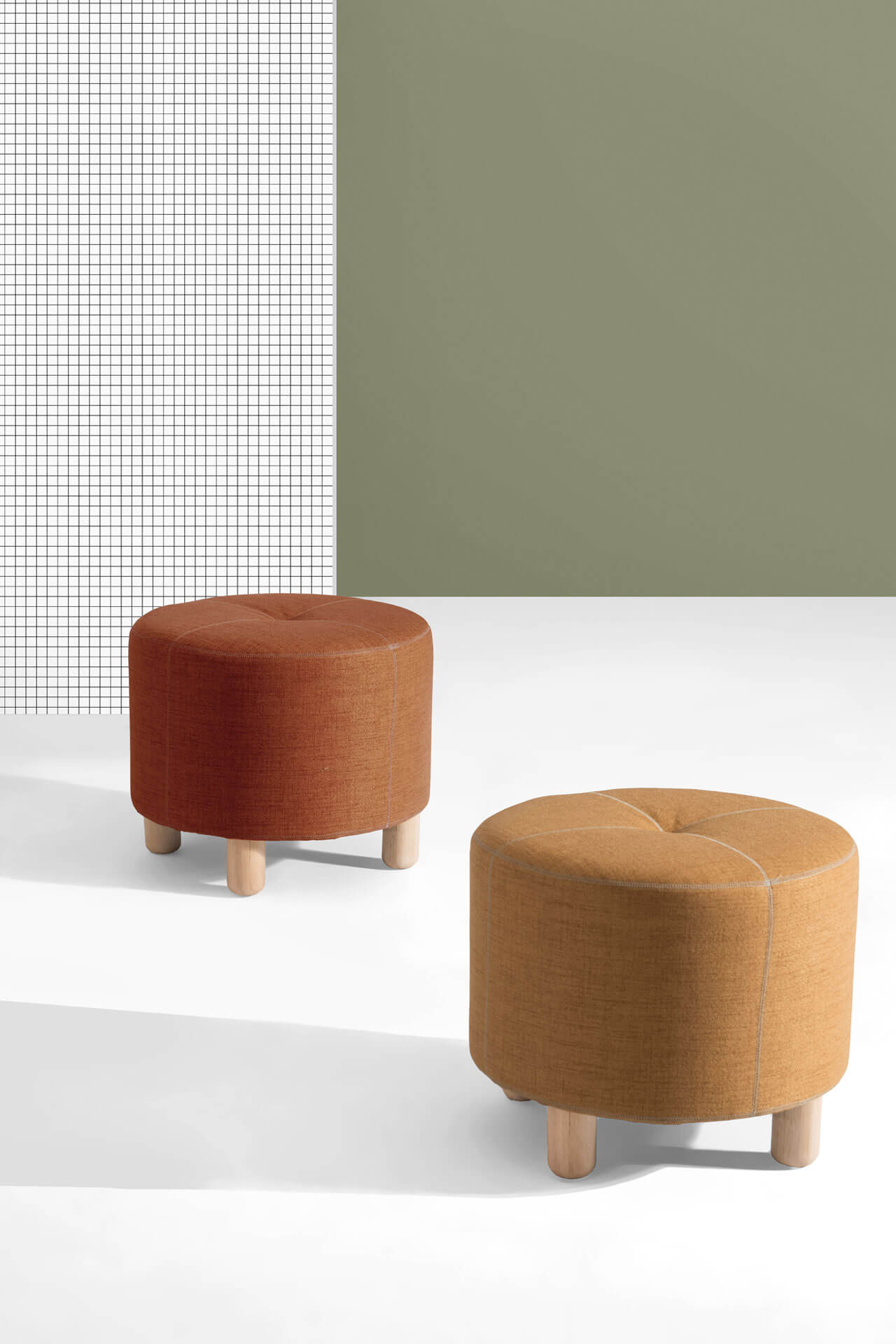Puff redondo de pequenas dimensões, super versátil e colorido. O tecido utilizado é proveniente de retalhos, evitando assim o desperdício de material. Possui um pesponto nas bordas e no assento.