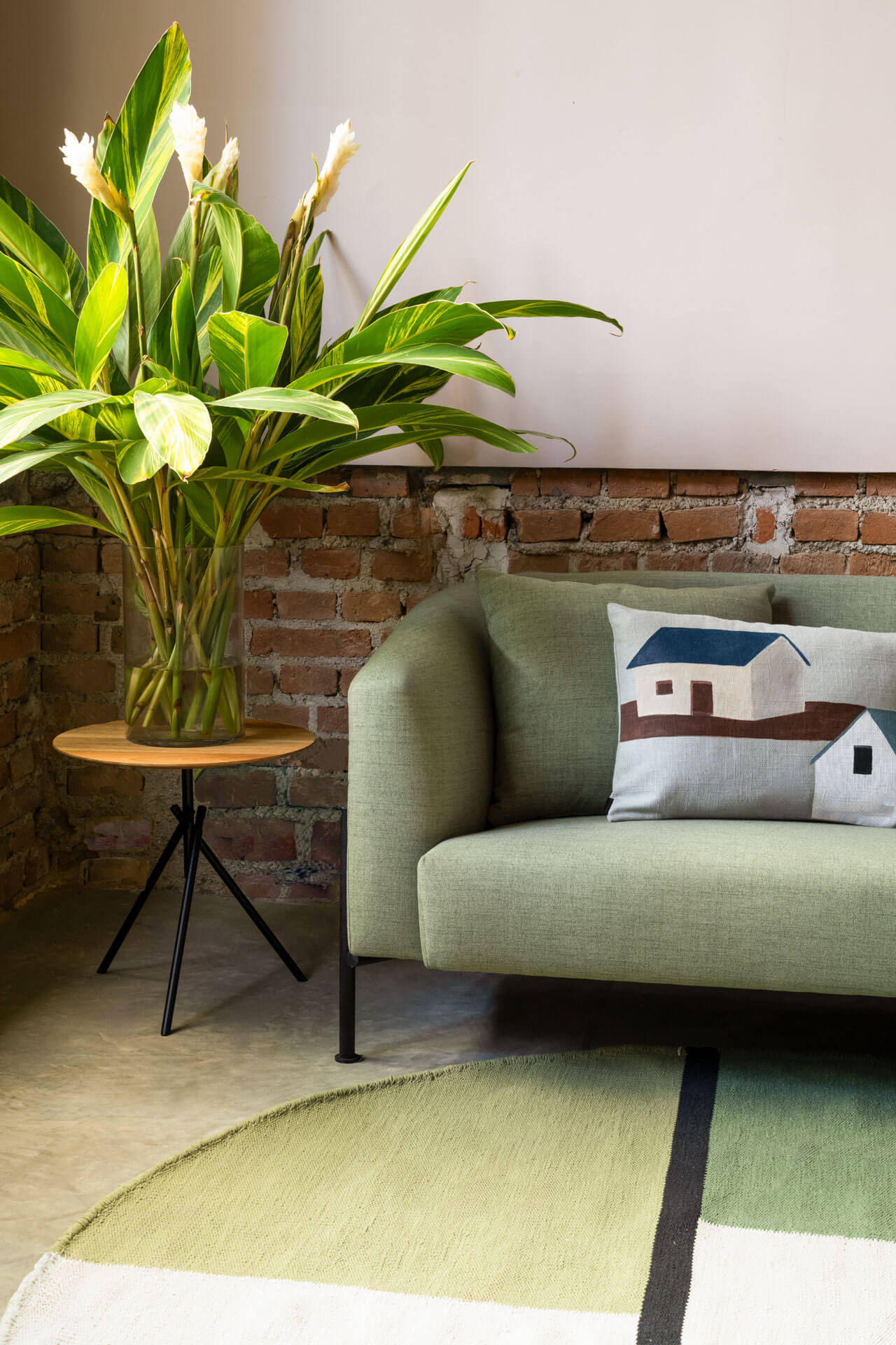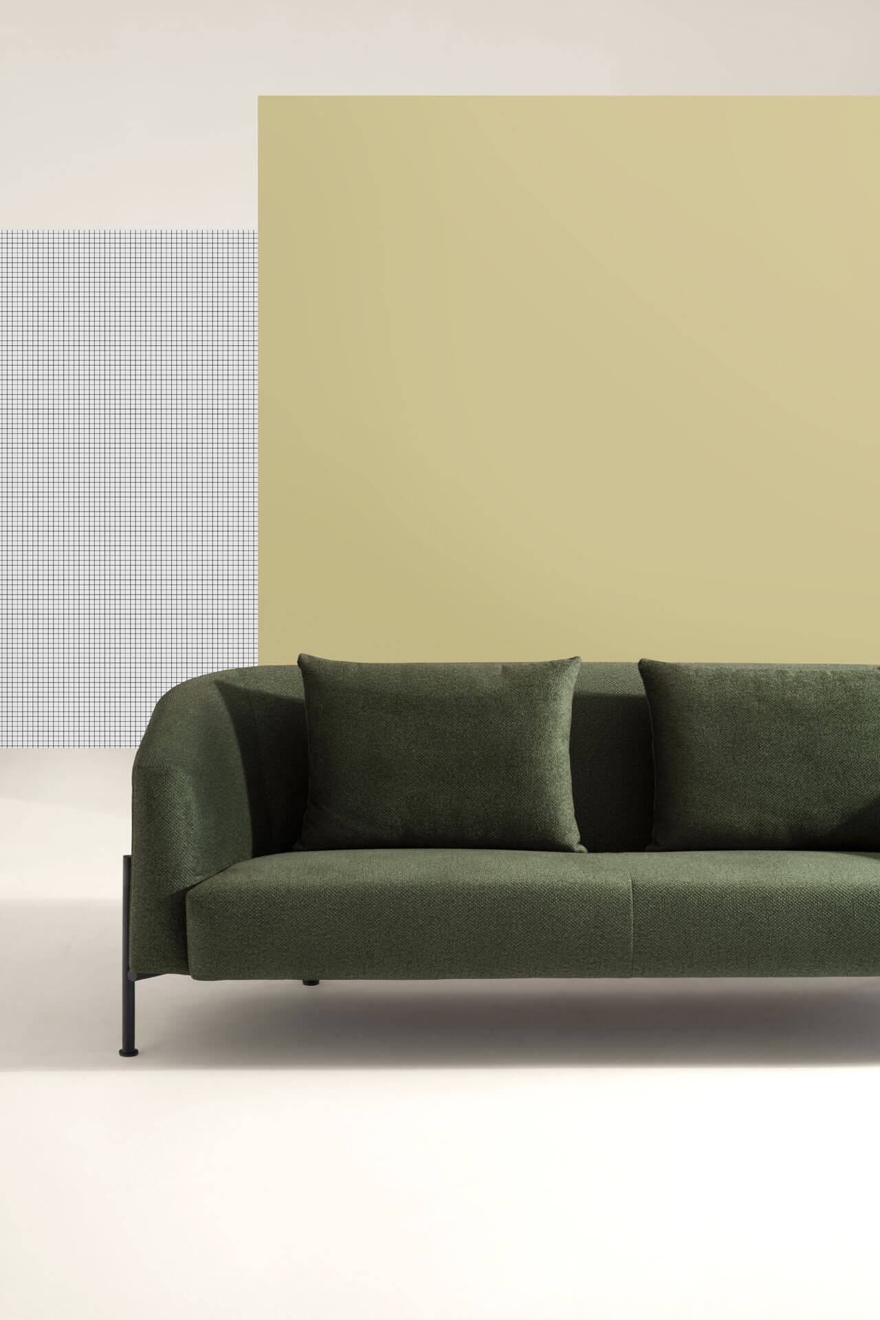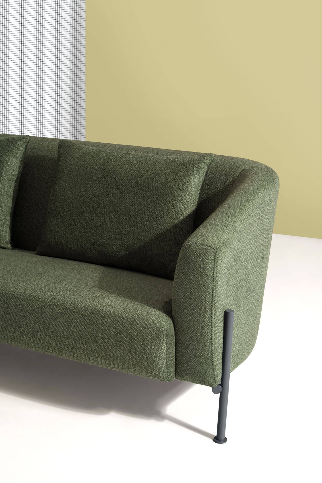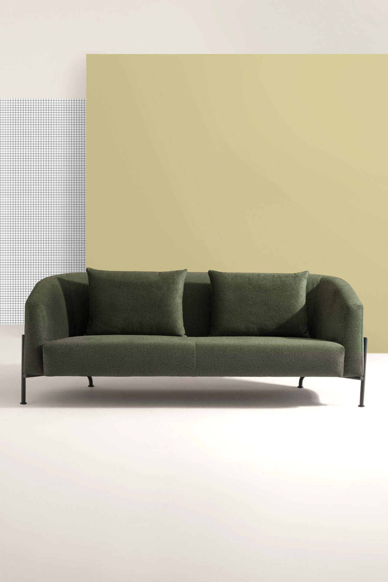 O Milu é um sofá moderno, com boa profundidade e formas bem arredondadas. Possui duas almofadas soltas para dar mais conforto ao sentar. A peça foi pensada para ser usada de forma convencional ou simplesmente solta no ambiente.