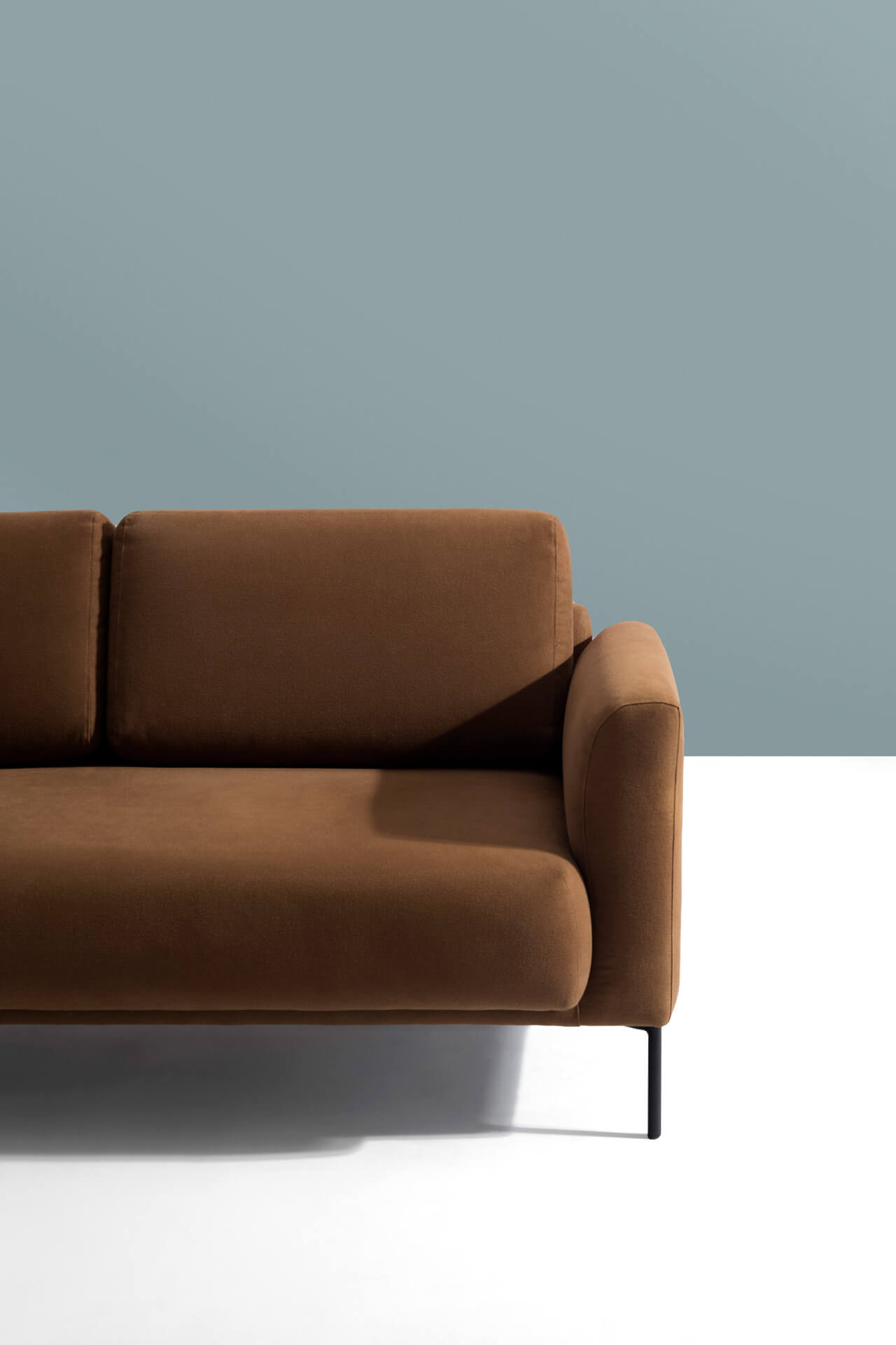 O sofá Rima foi projetado para ser um sofá sem excessos. Um dos seus atrativos está na possibilidade de se utilizar duas cores e tecidos diferentes na peça. Esse modelo de sofá é ideal para espaços menores, desde salas de TV, de leitura, até um cantinho de relaxamento.
