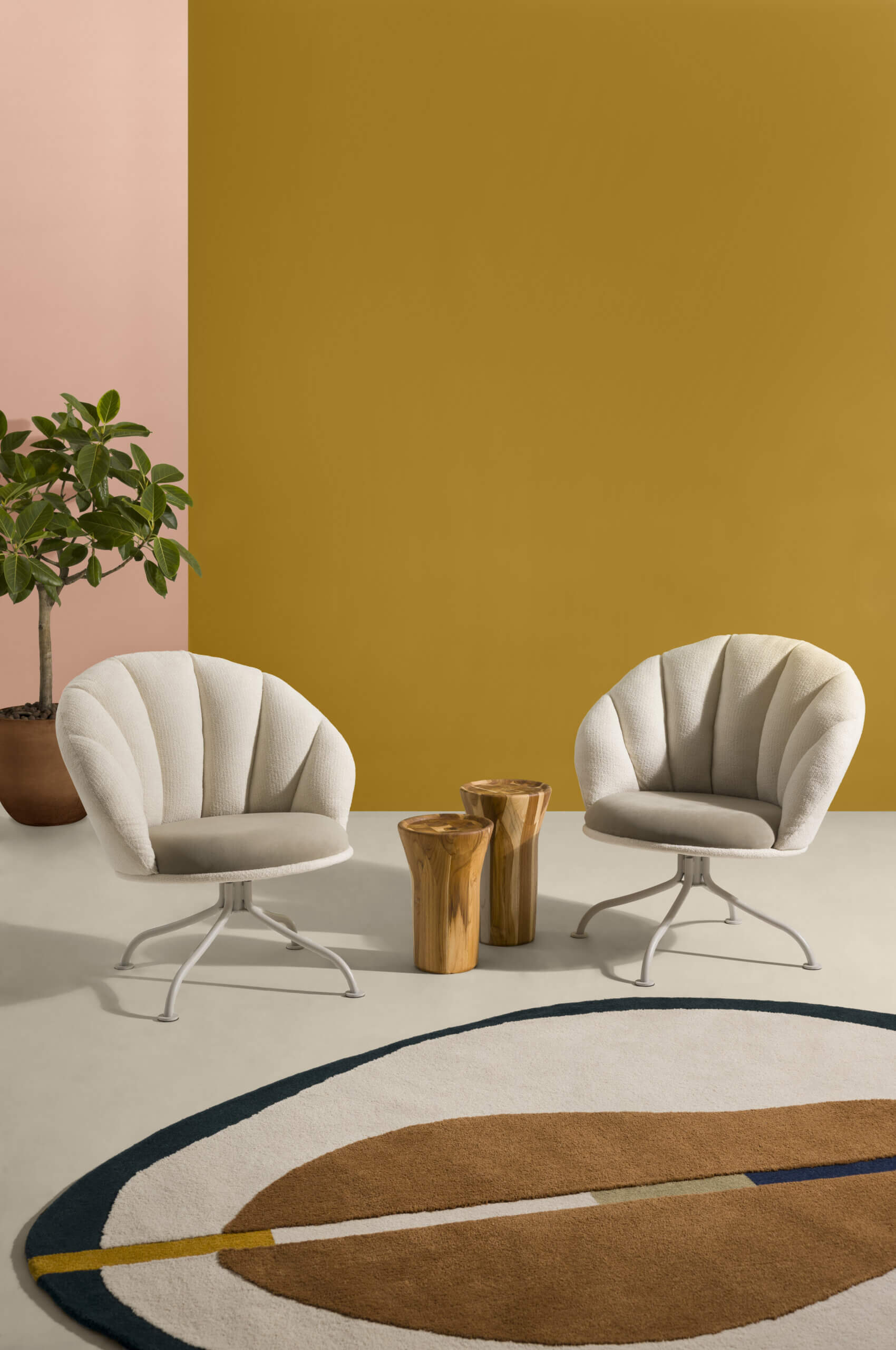 Desenvolvida a partir da icônica Poltrona Leque, a Suspiro recebe um generoso e marcante estofamento que percorre todo o seu encosto e assento. Pode ser feita em um único tecido ou com o assento de cor diferente, sempre mesclando com diversas opções de pintura de base, tornando-a um produto único! Disponível com a base fixa ou giratória.